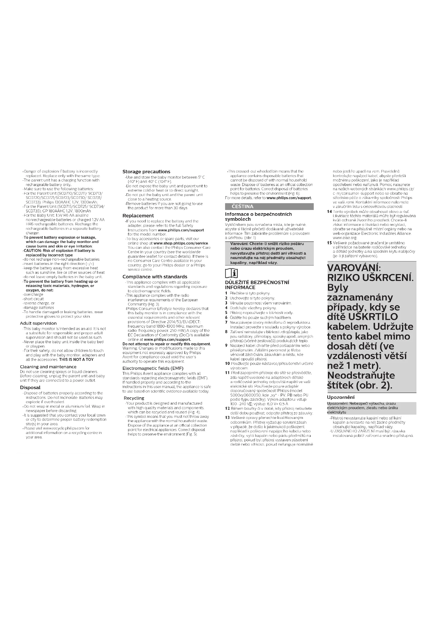 -Tato elektronika chuvika ma slouzit jako pomucka. Nepiedstavojne nahradu odpovedneho a faenho dohicićdospelćosobau a nelezji timbo zpúsobem použival. Nikdy neumisfute dětskovi jeonotku do dětské postylyne nebo afráčky.