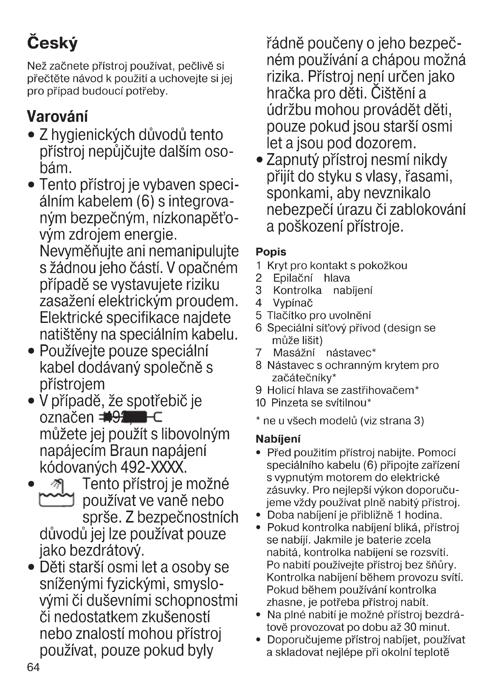 V případě, že spotřebič je označen 492, můžete jej použít s libovolným napájecím Braun napájení kódovaných 492-XXXX.