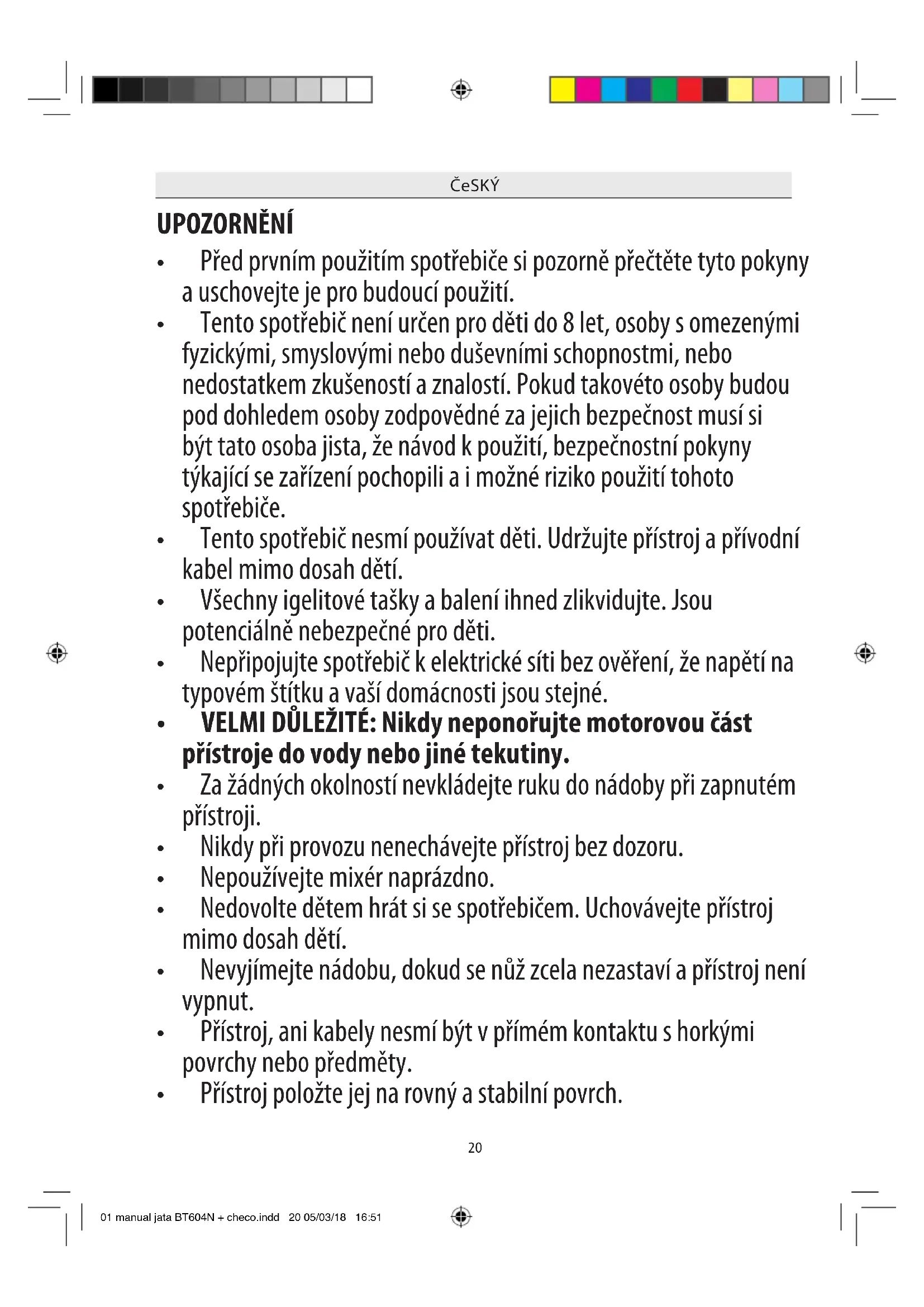 - Přístroj položte jej na rovný a stabilní povrch. 01 manual jata BT604N + checo.indd 20 05/03/18 16:5121