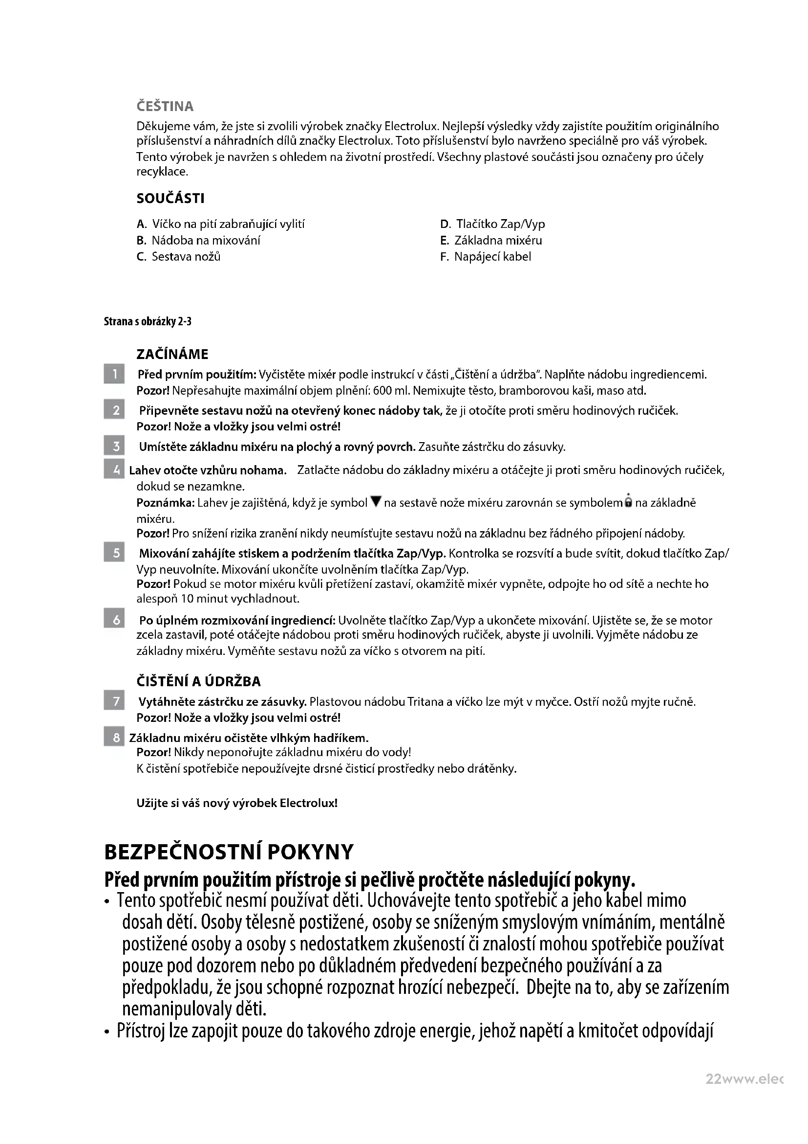 ESB2630 - Mixér ELECTROLUX - Bezplatný návod k obsluze