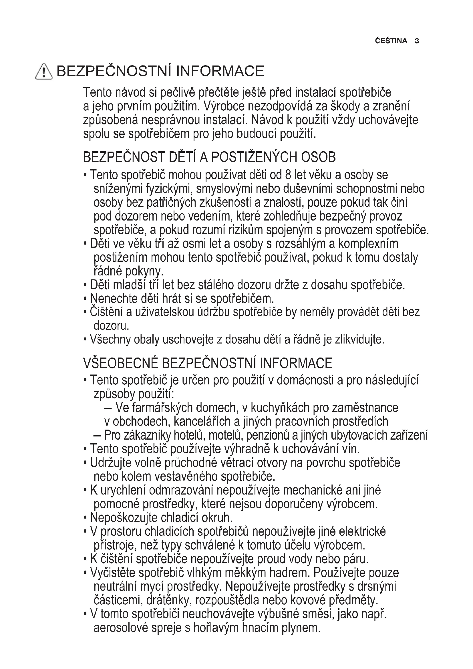 - Děti mladší tří let bez stálého dozoru držte z dosahu spotřebiče.