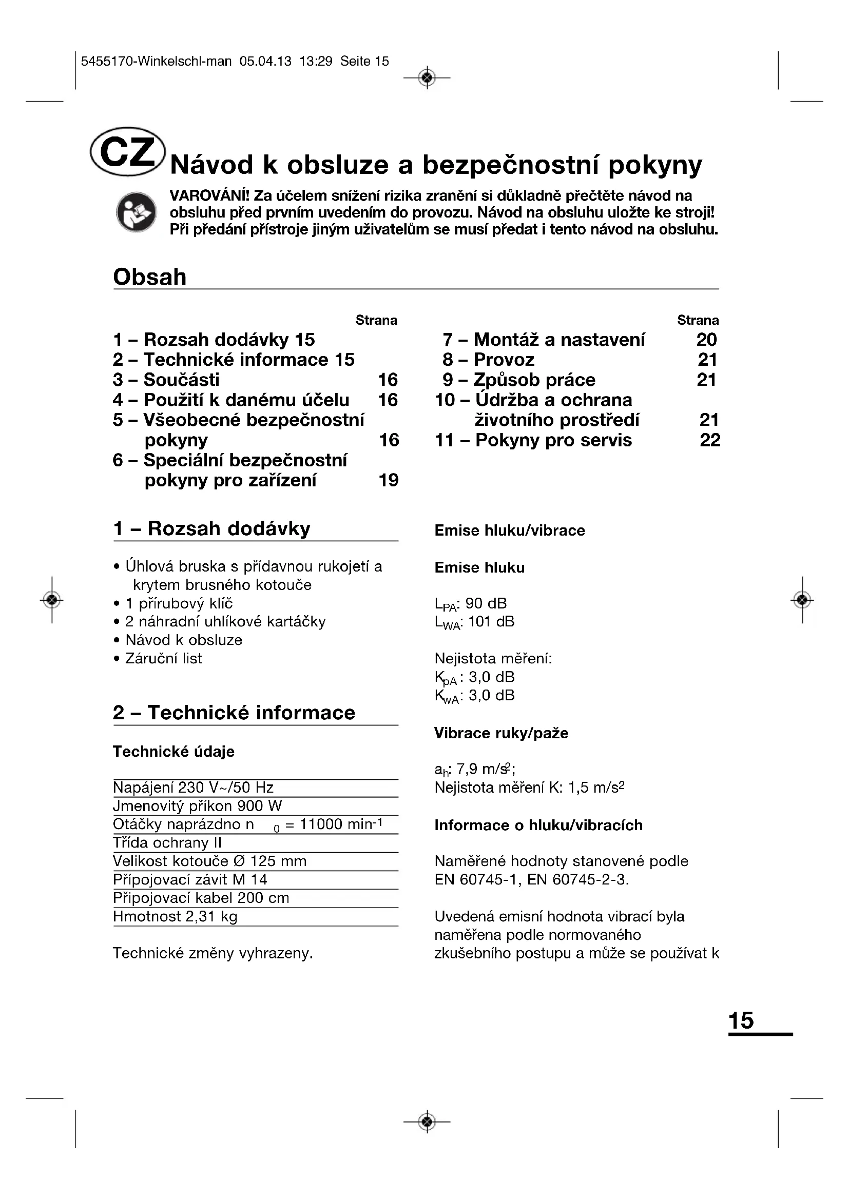 CZ - Úhlová bruska 15