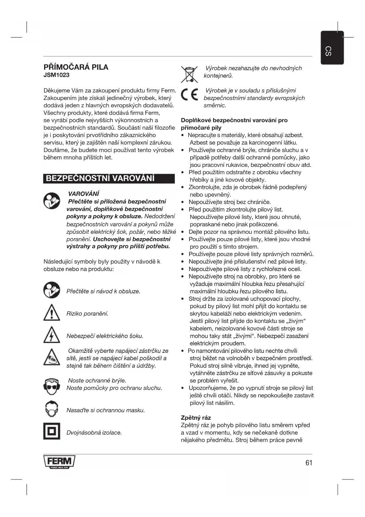 JSM1023 - Pila Ferm - Bezplatný návod k obsluze