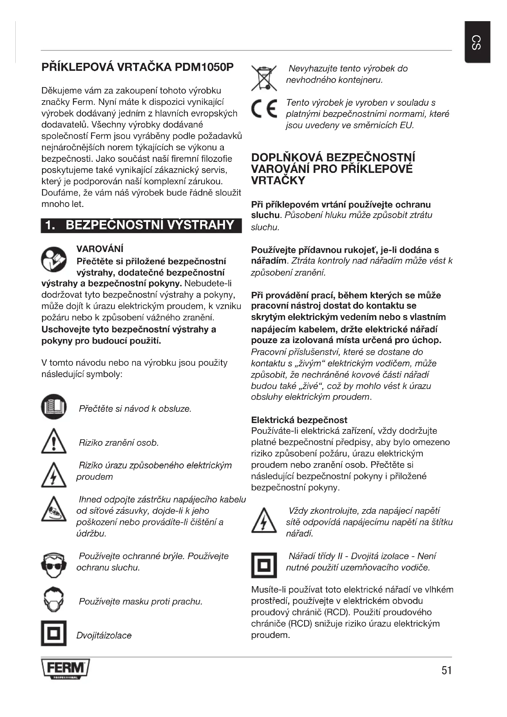 NÁVOD K OBSLUZE PDM1050P Ferm