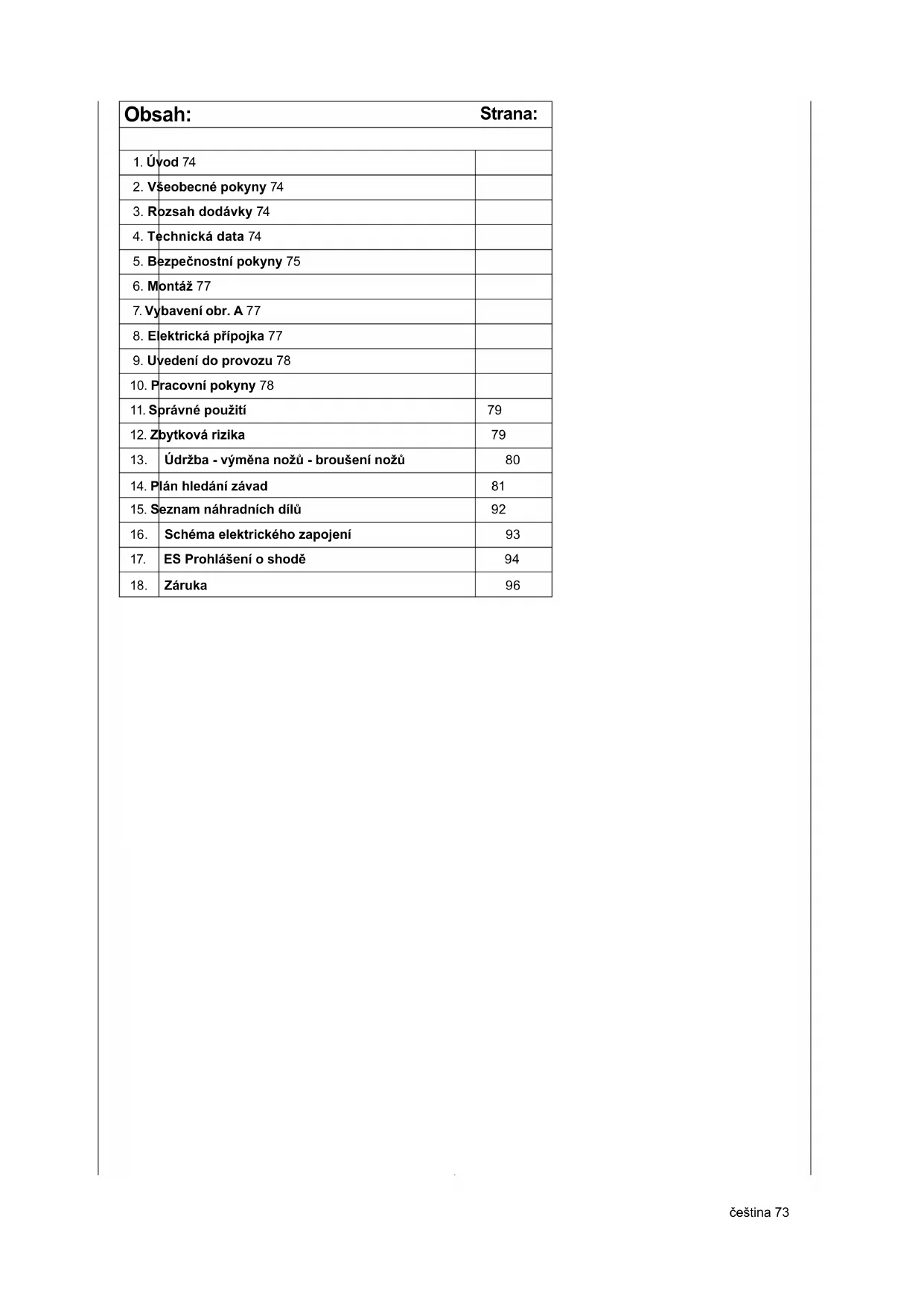 10. Pracovní pokyny 78
