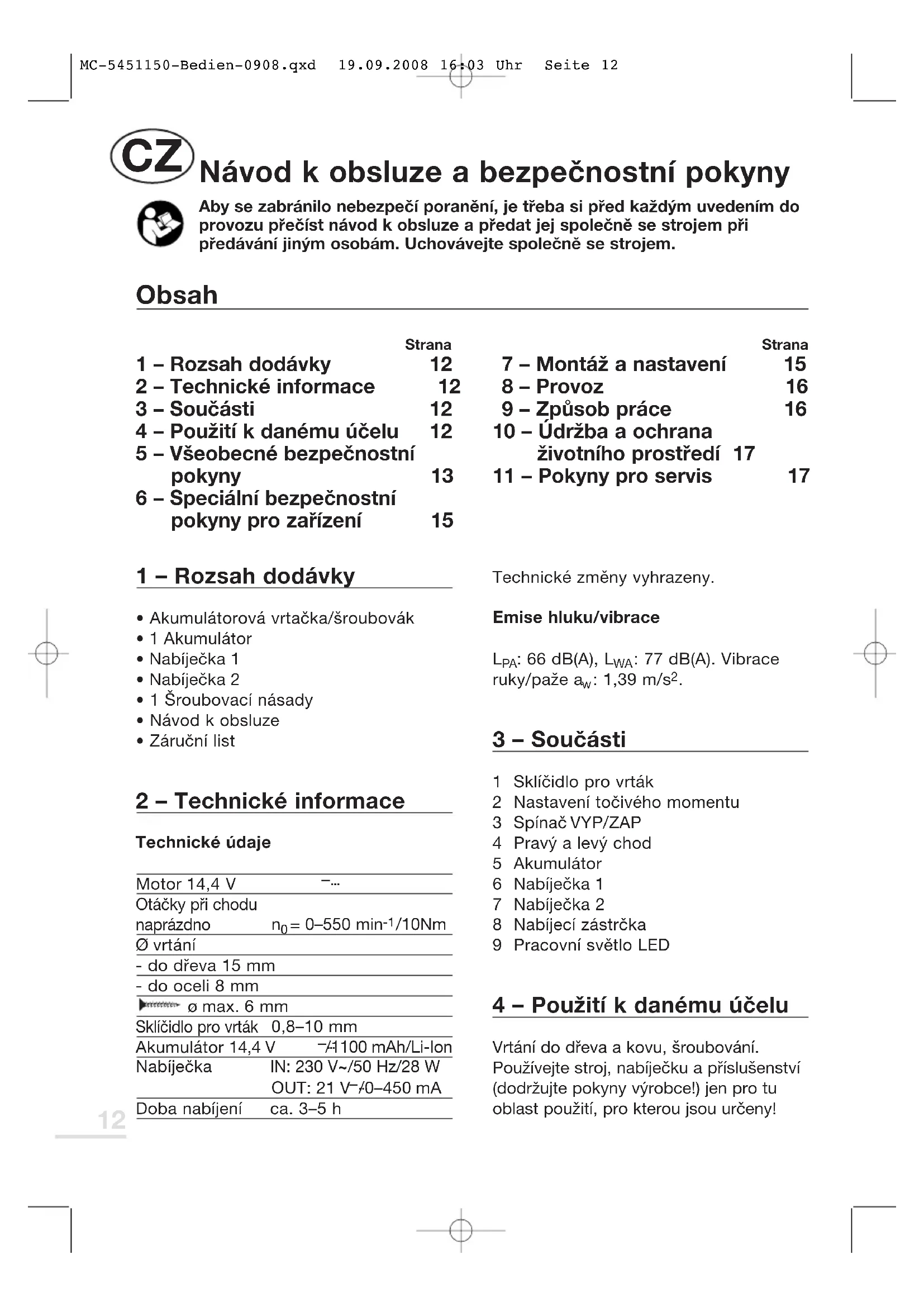 | 5 - Všeobecné bezpečnostnéPokyny | 13 | životniho prostředí 17 |