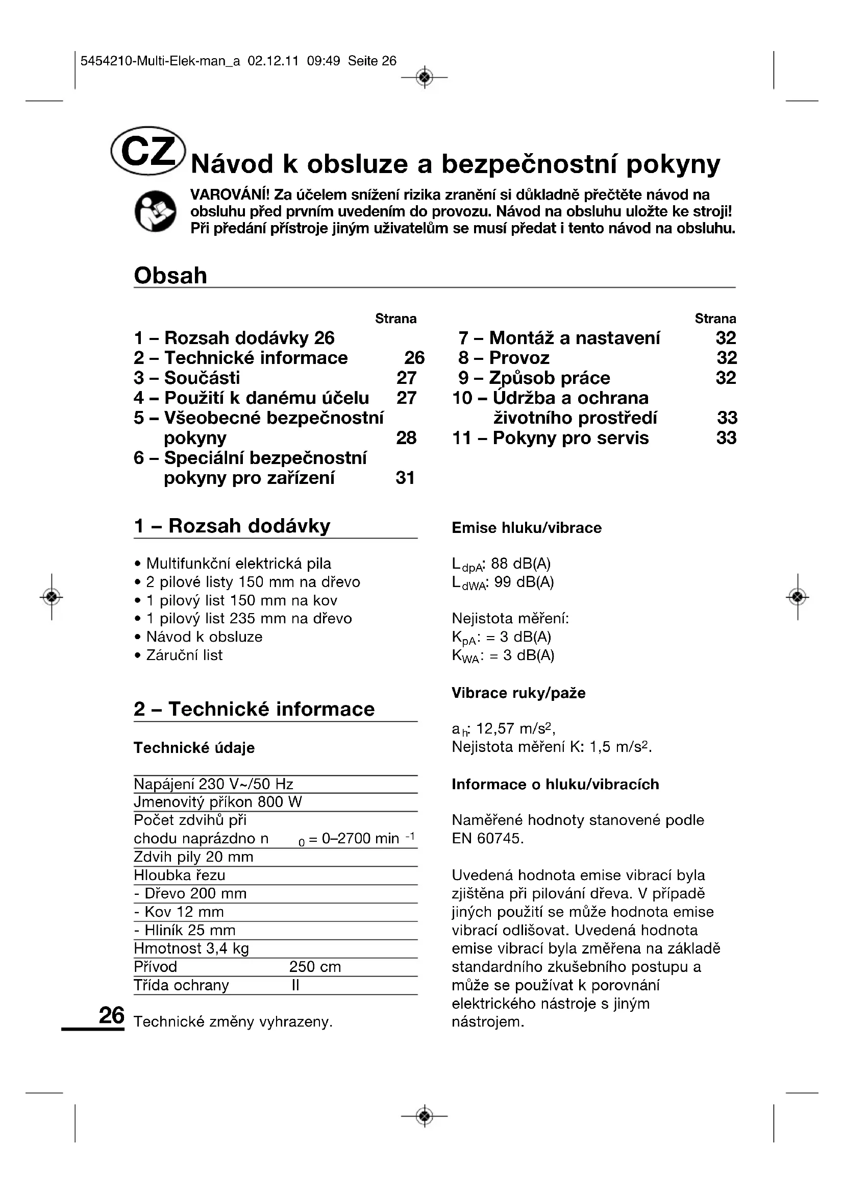 | 2 – Technické informace | 26 | 8 – Provoz | 32 |