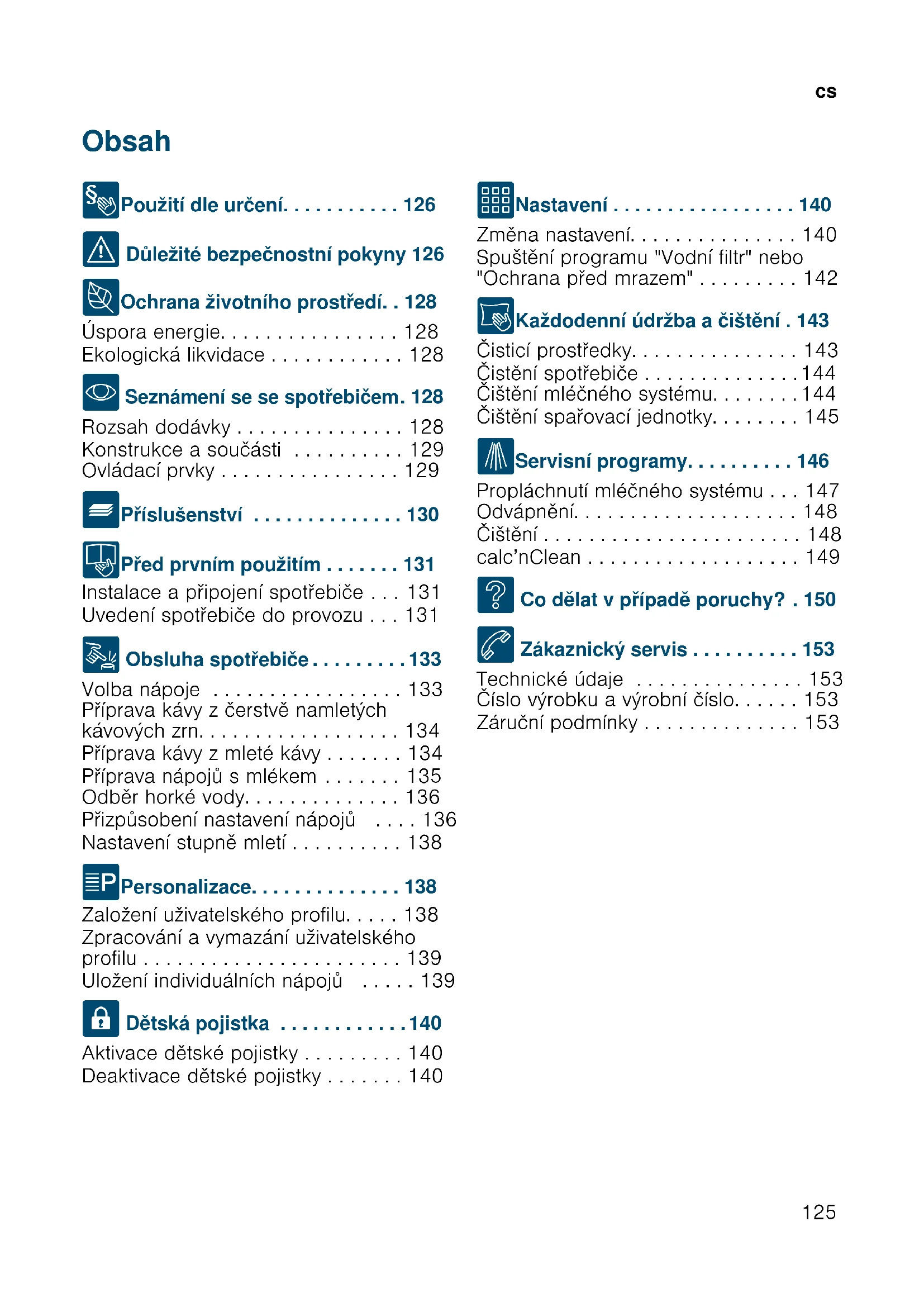 - Obsah csNá v o d k použi t í 8 Použití dle určení p. 126