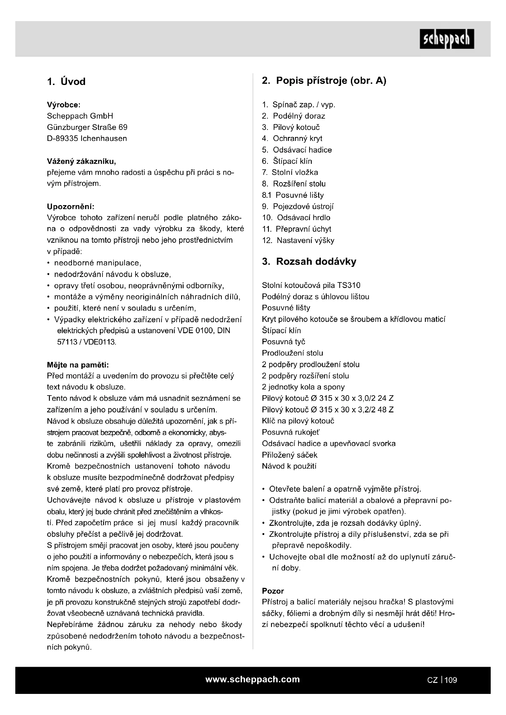 NÁVOD K OBSLUZE TS310 SCHEPPACH