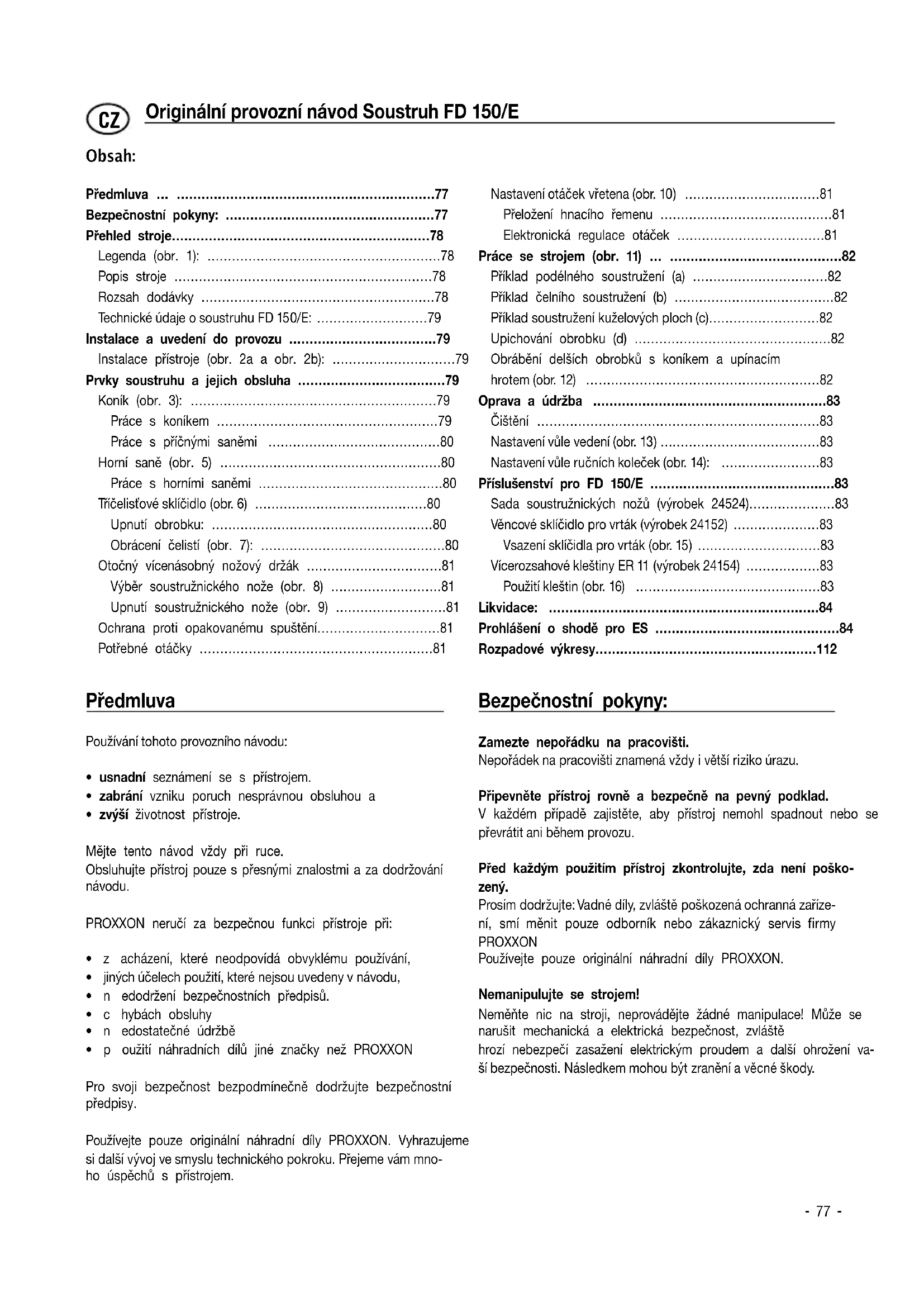 Používejte pouze origináni nahradní díly PROXXON. Vyhrazujemé si dalí sývyoj ve smyslu technickéhoPokroku. Prějeme vám mnoho úspechu s pristrojem.