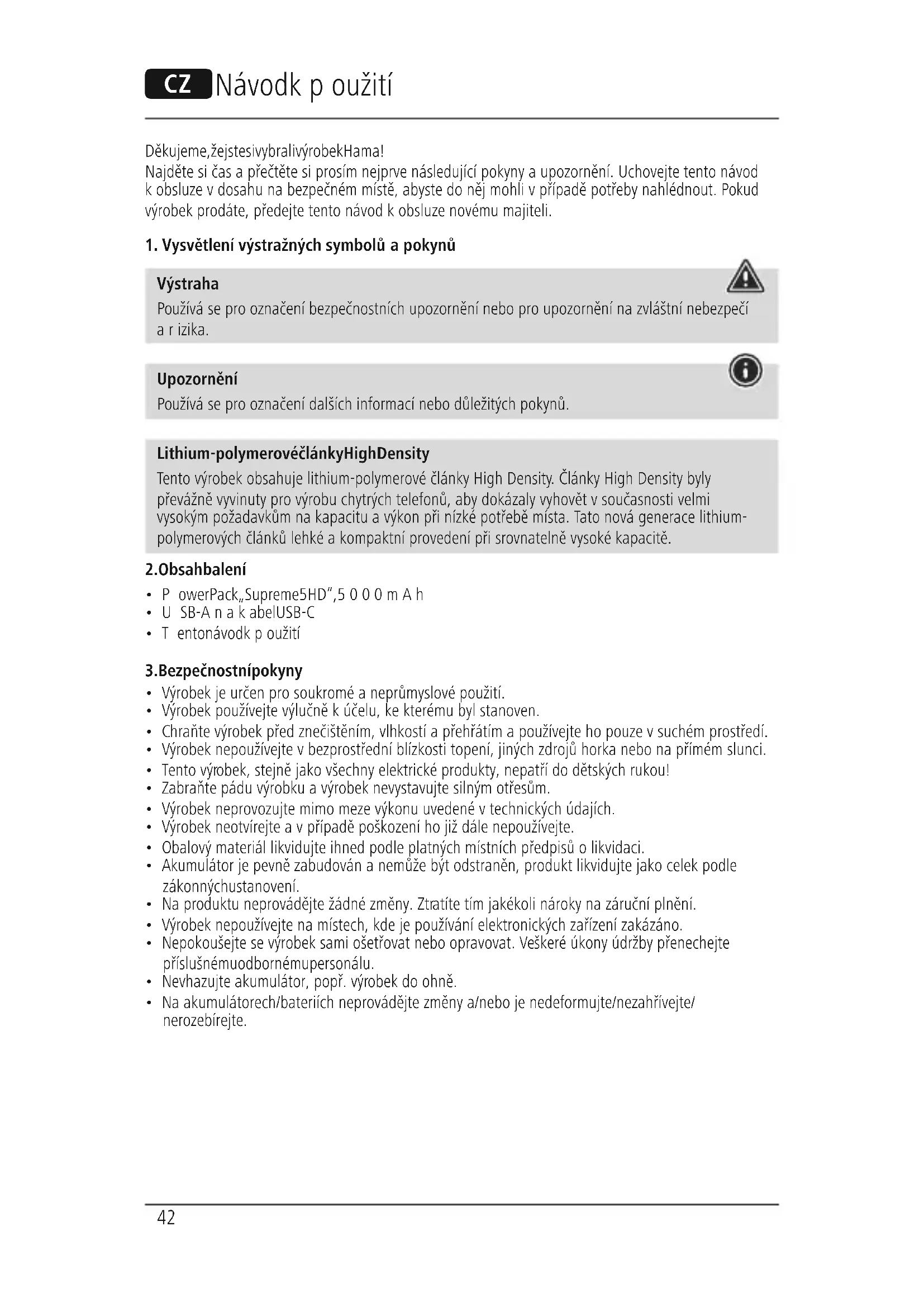 Supreme 5HD 00187290 - Přenosná baterie HAMA - Bezplatný návod k obsluze