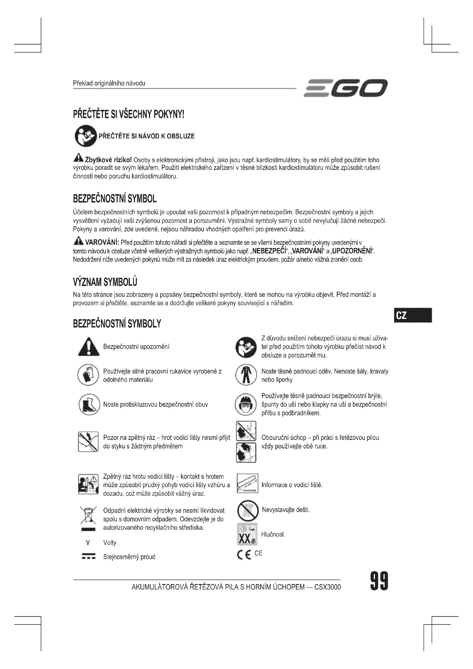 CSX3000 - Pila EGO - Bezplatný návod k obsluze