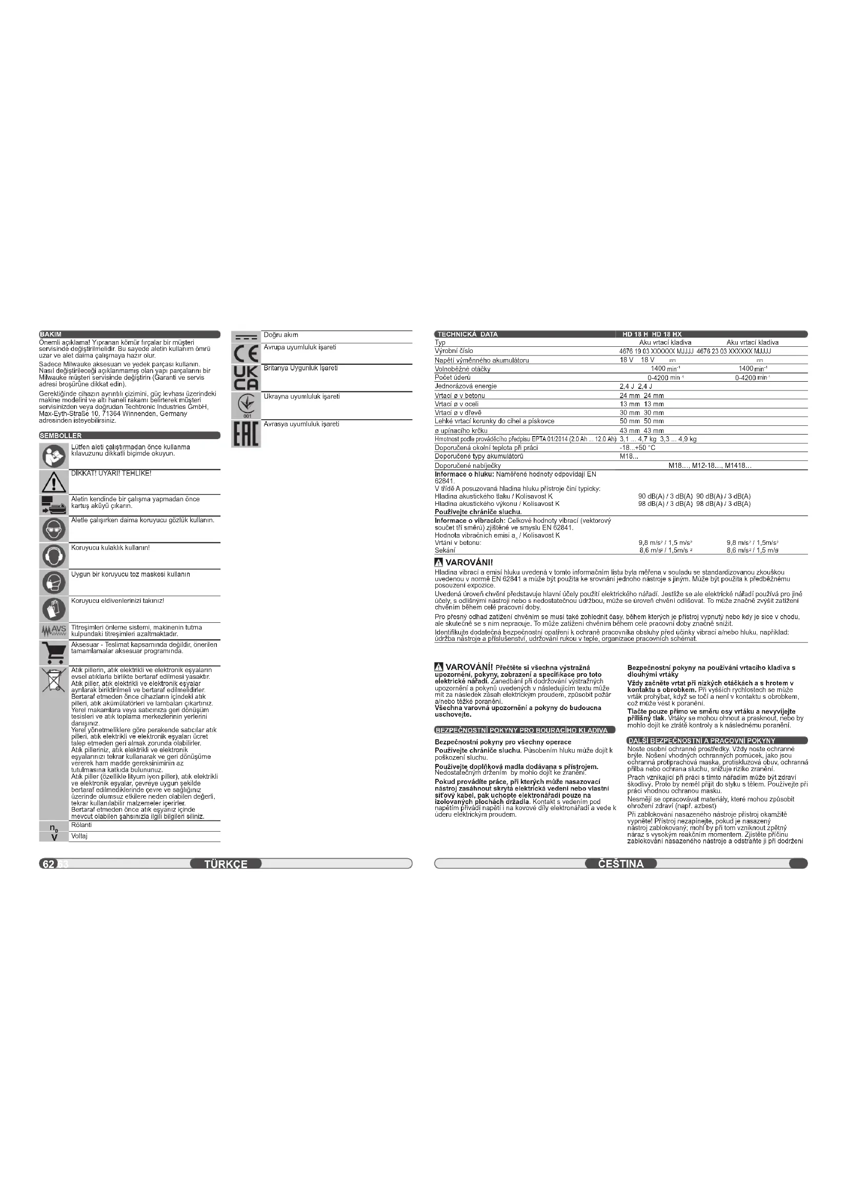 HD18 HX - Vrtačka MILWAUKEE - Bezplatný návod k obsluze