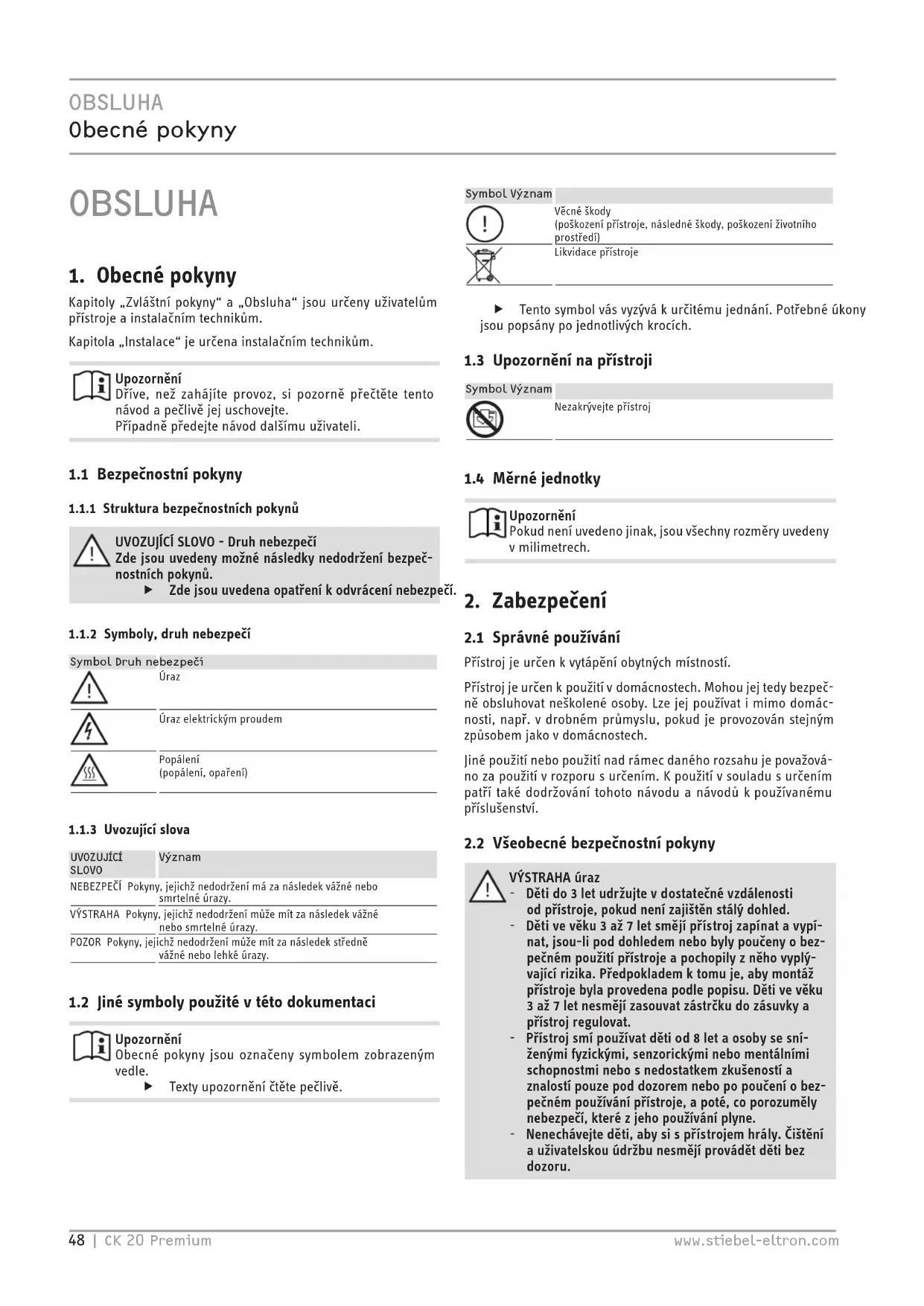 NÁVOD K OBSLUZE CK 20 Premium STIEBEL ELTRON