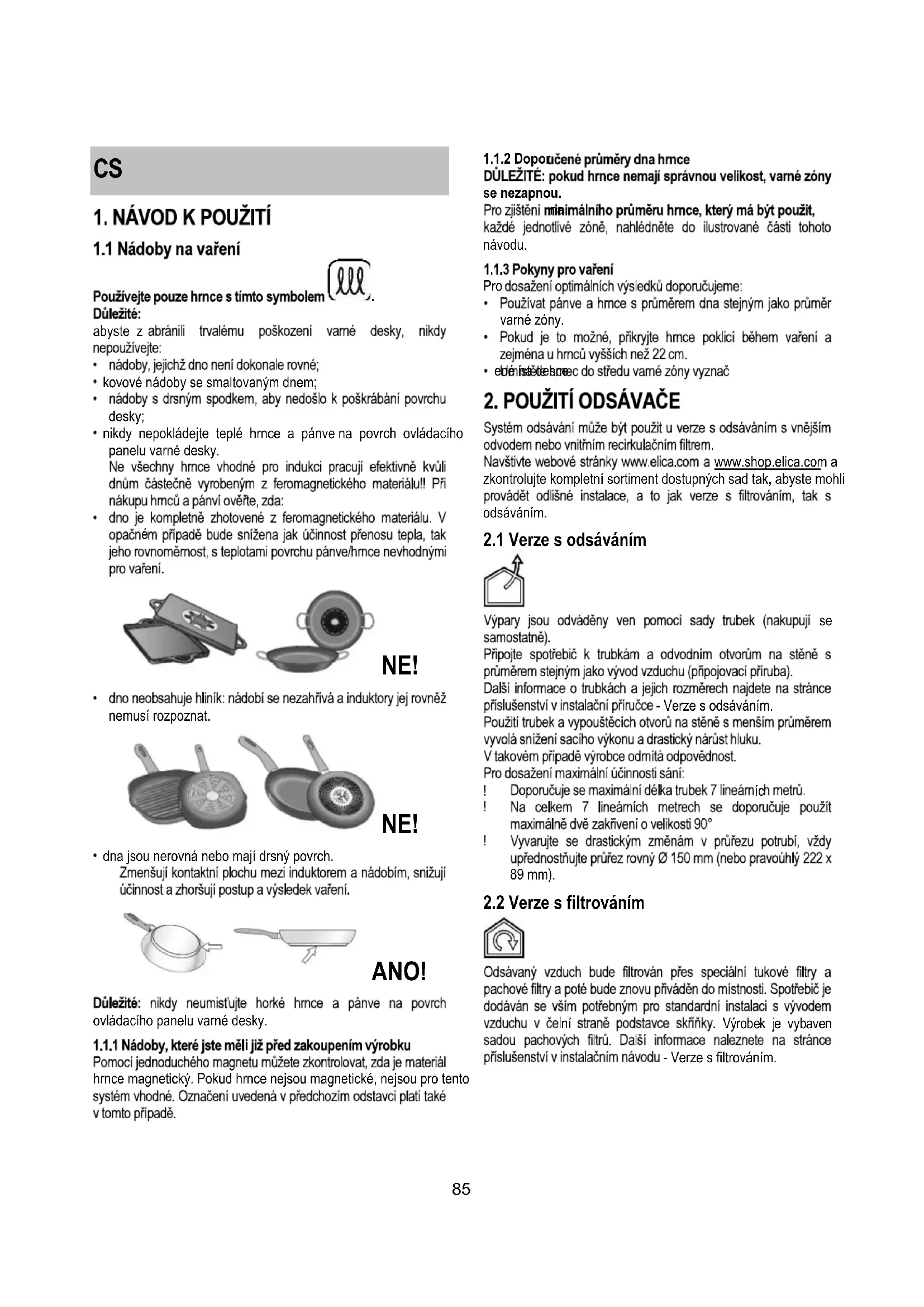 ní Výrobek je vybaven - Verze s filtrováním.86