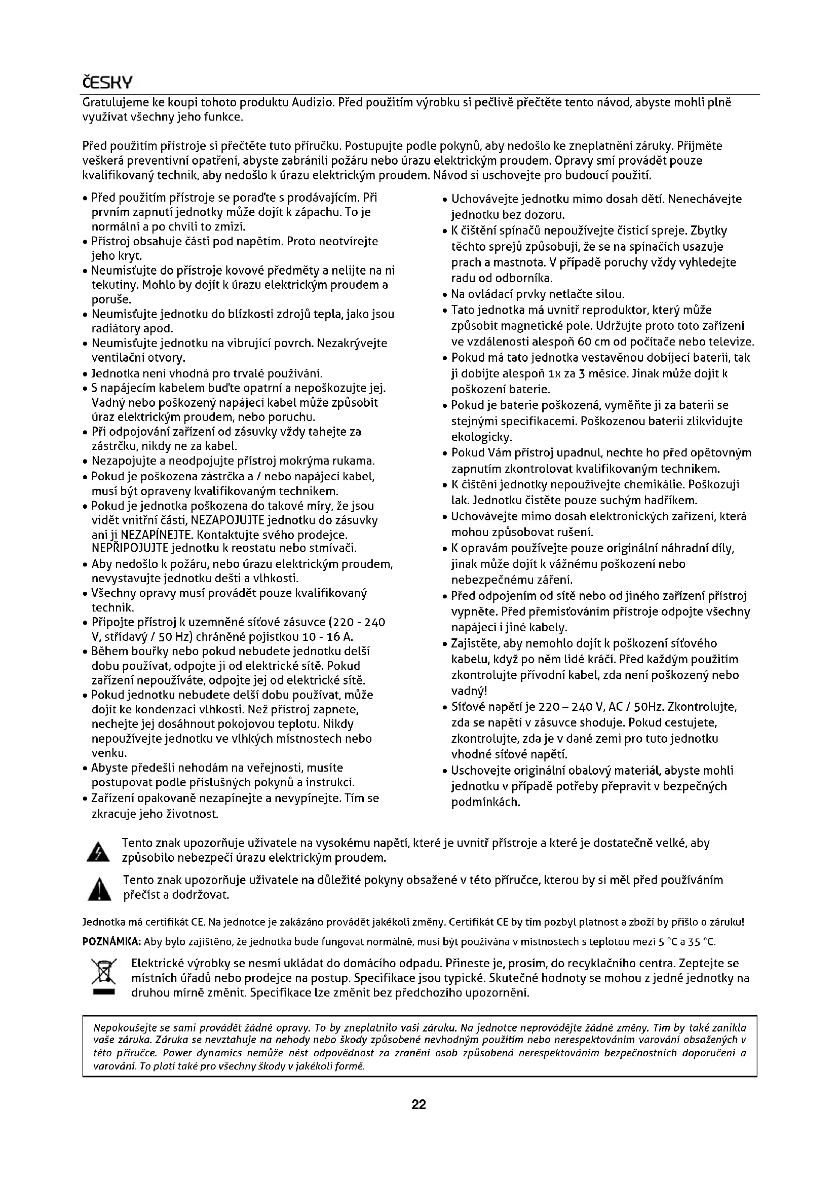 Gratulujeme ke koupi tohoto produktu Audizio. Před použitím výrobku si pečlivě přečtěte tento návod, abyste mohli plně využívat všechny jeho funkce.