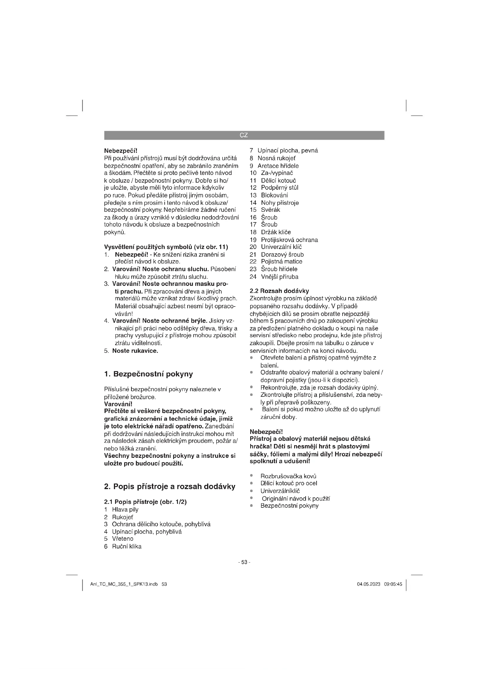 brací na ruce a paže, pokud se přístroj používá delší dobu nebo není řádně veden a udržován. Anl_TC_MC_355_1_SPK13.indb 54Anl_TC_MC_355_1_SPK13.indb 54 04.05.2023 09:05:4504.05.2023 09:05:45CZ