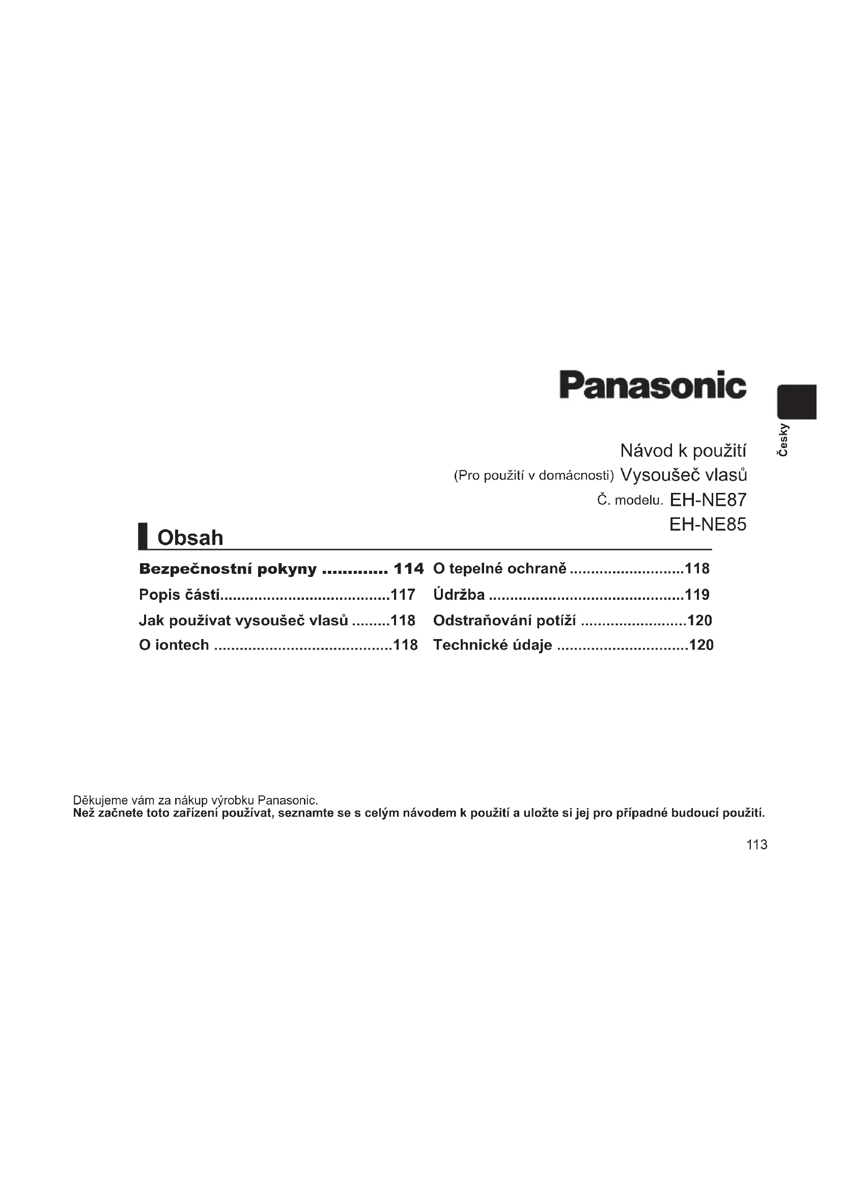 NÁVOD K OBSLUZE EHNE85 PANASONIC