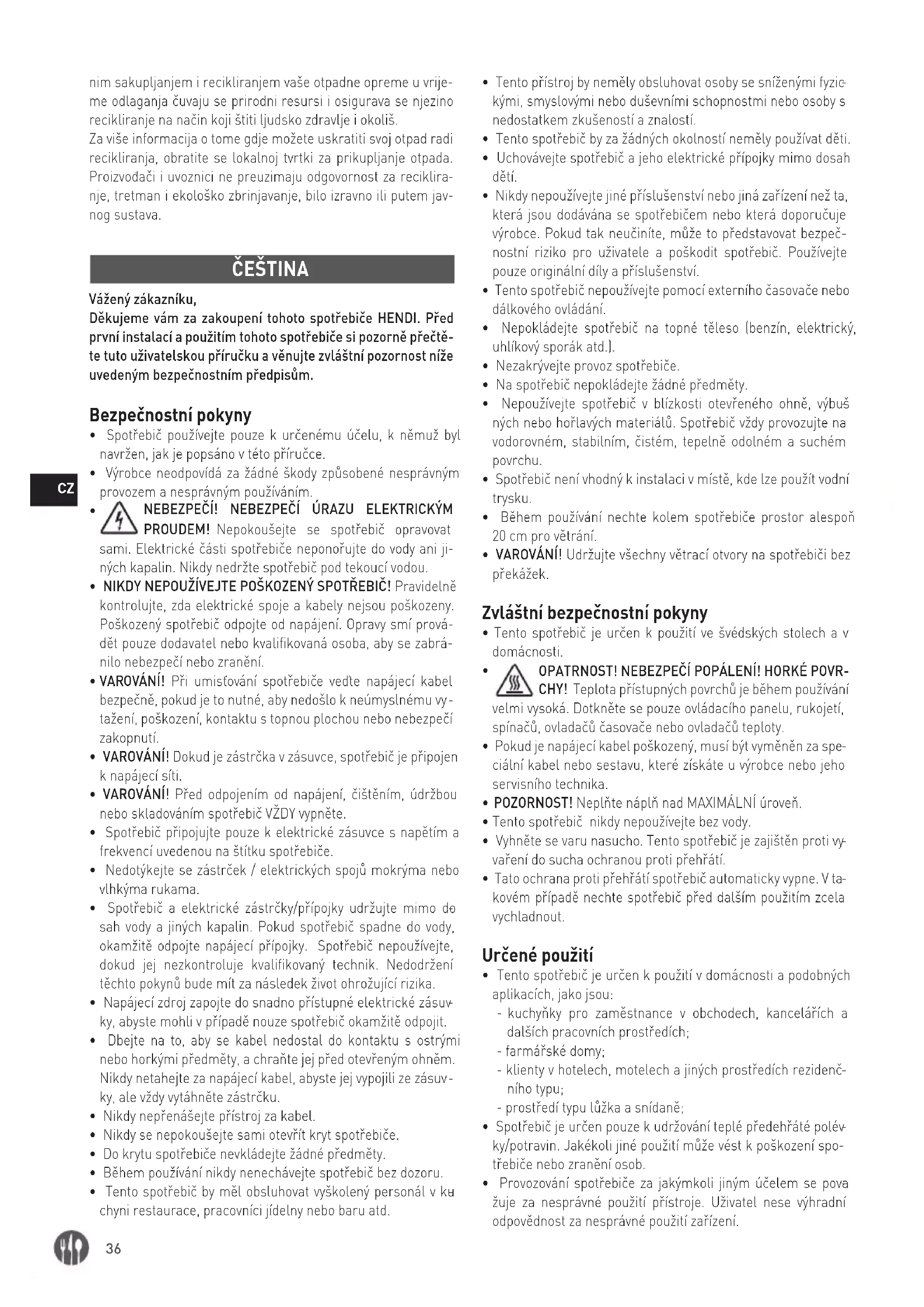 nje, tretman i ekološko zbrinjavanje, bilo izravno ili putem jav- nog sustava. ČEŠTINA Vážený zákazníku, Děkujeme vám za zakoupení tohoto spotřebiče HENDI. Před první instalací a použitím tohoto spotřebiče si pozorně přečtě