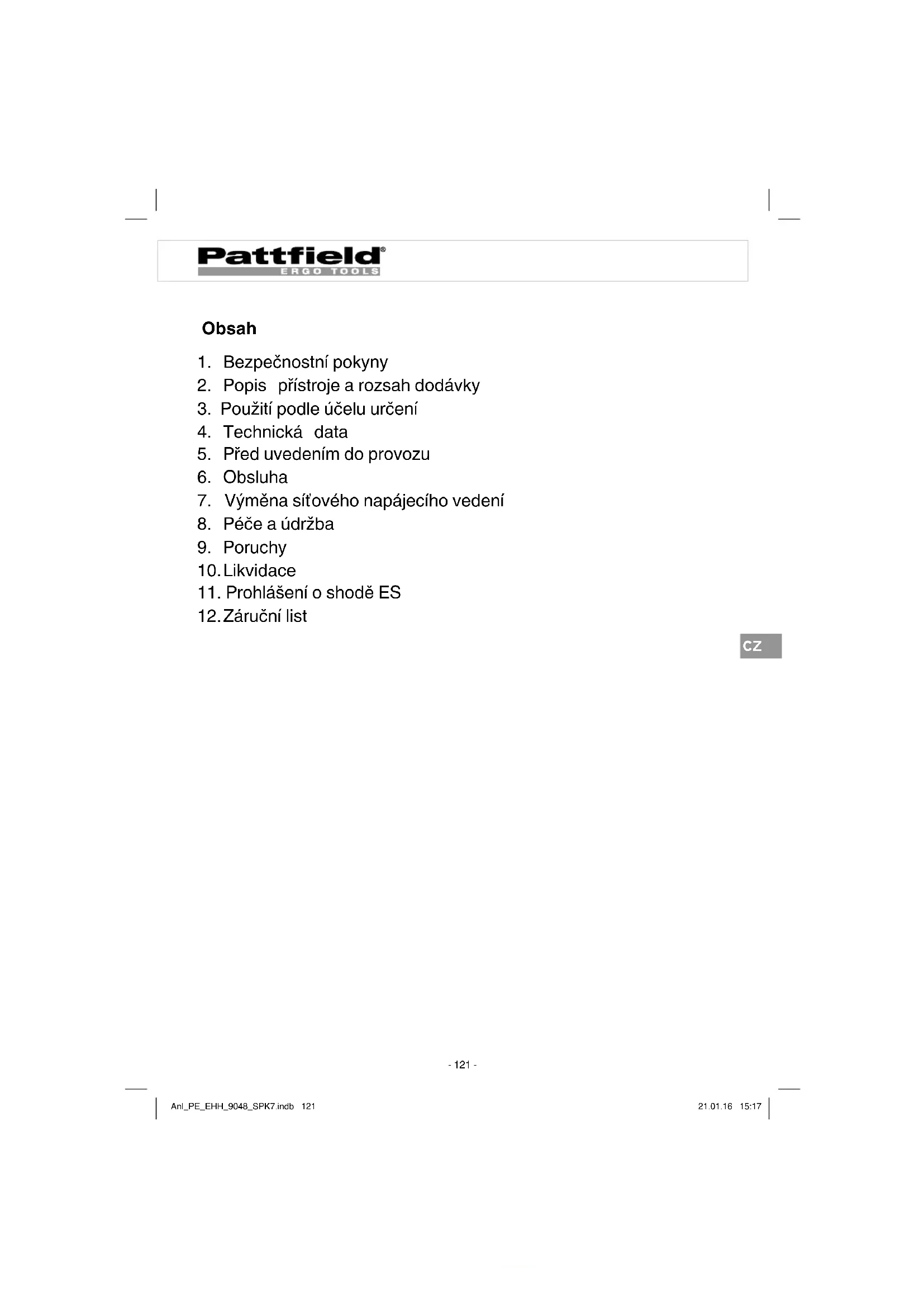 NÁVOD K OBSLUZE PEEHH 9048 Pattfield