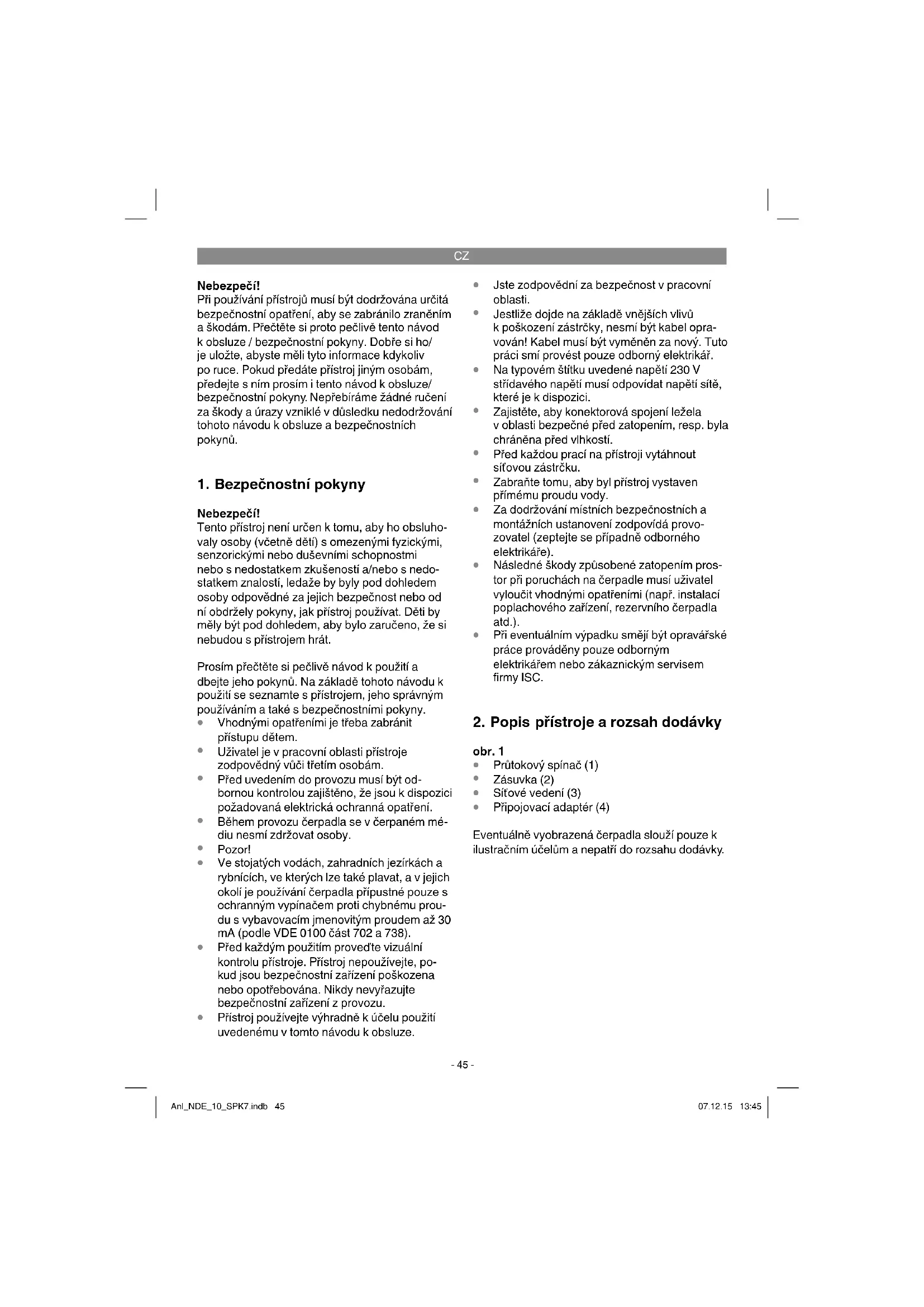 Připojovací adaptér (4) Eventuálně vyobrazená čerpadla slouží pouze k ilustračním účelům a nepatří do rozsahu dodávky. Anl_NDE_10_SPK7.indb 45Anl_NDE_10_SPK7.indb 45 07.12.15 13:4507.12.15 13:45CZ