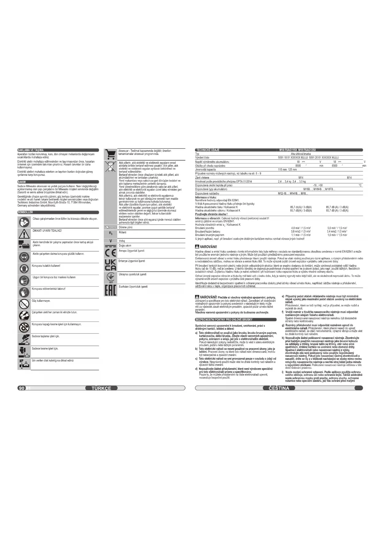NÁVOD K OBSLUZE M18 FSAG115X MILWAUKEE