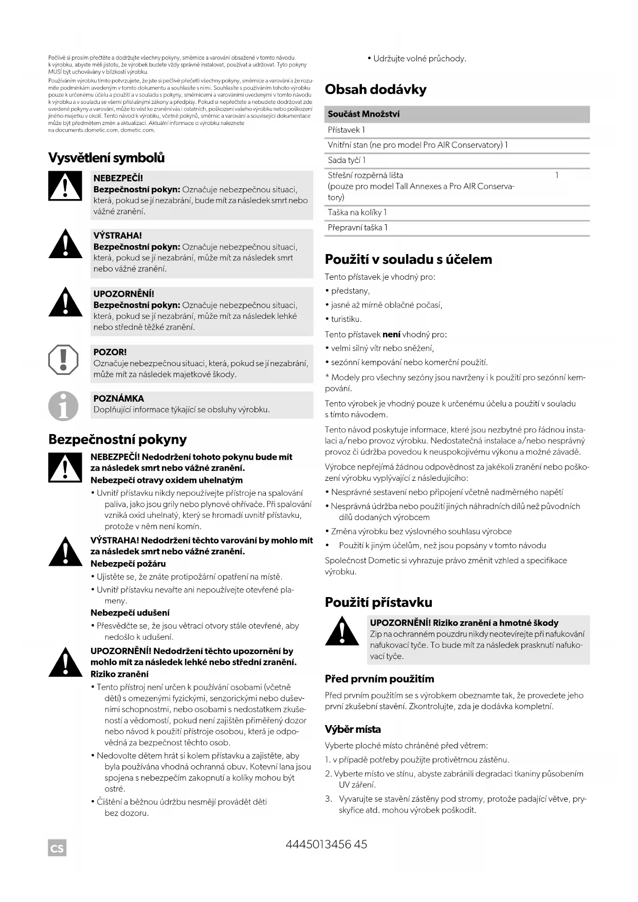 - Použití k jiným účelům, než jsou popsány v tomto návodu Společnost Dometic si vyhrazuje právo změnit vzhled a specifikace výrobku. Použití přístavku