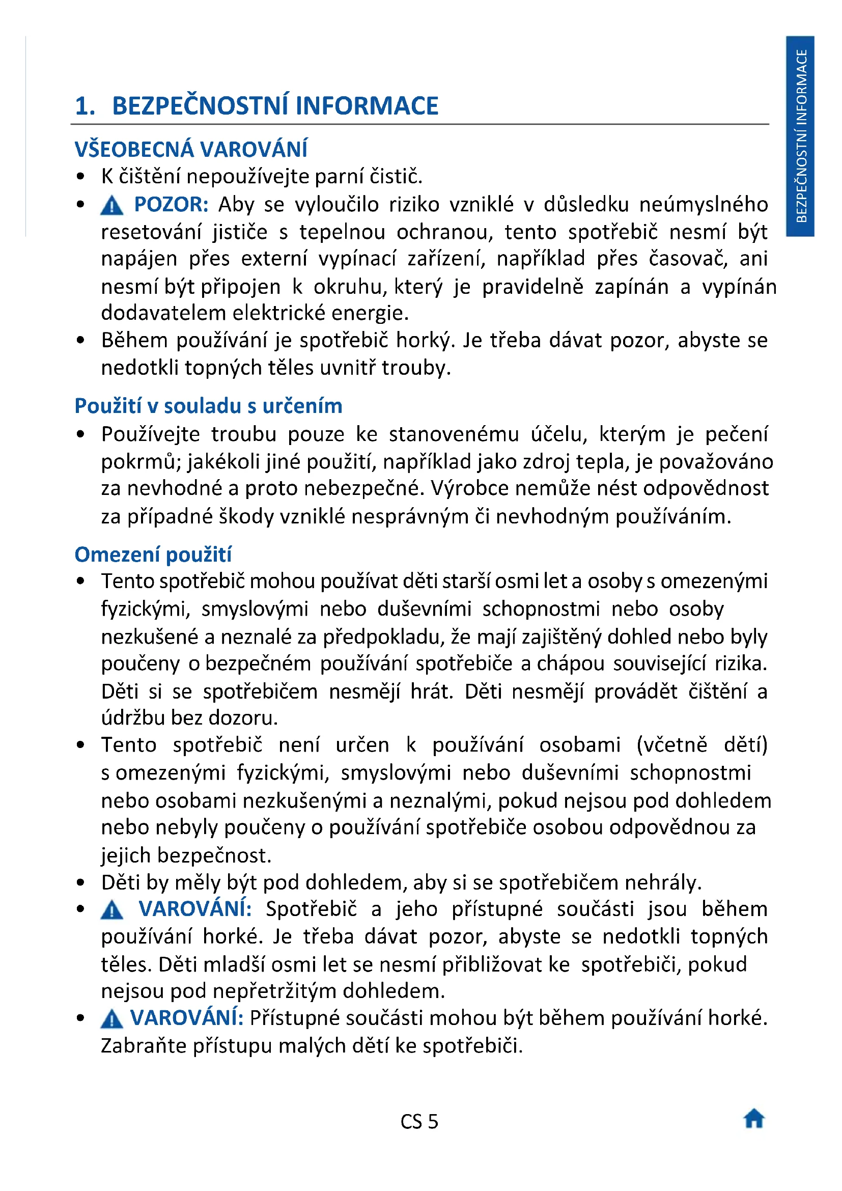 - VAROVÁNÍ: Přístupné součásti mohou být během používání horké. Zabraňte přístupu malých dětí ke spotřebiči.CS 6
