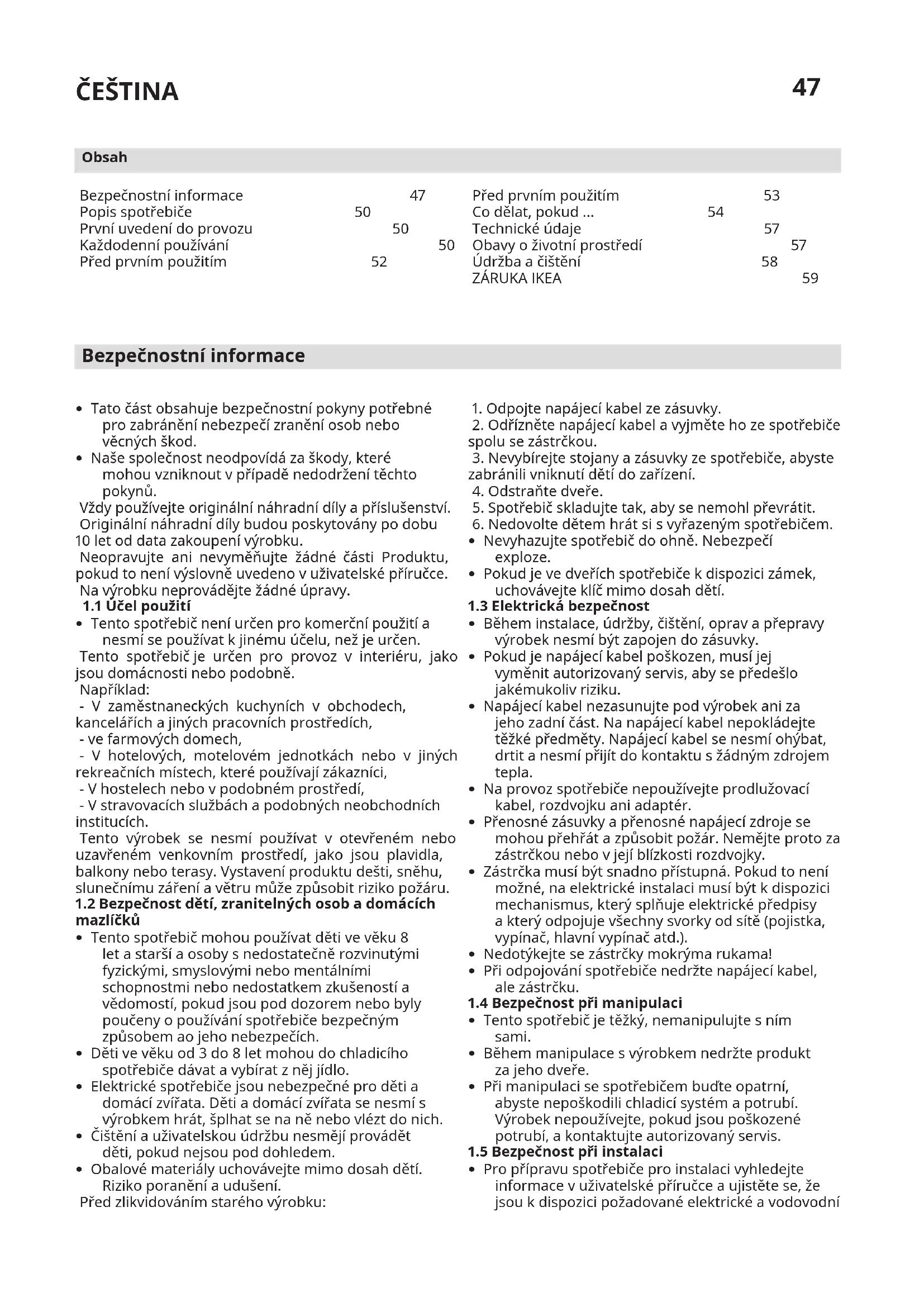 zásuvky a koše budou profesionálním a koncovým k dispozici po dobu sedmi let, a Na poslední tohoto návodu je uveden seznam autorizovaných servisních IKEA vnitrostátní telefonní ČEŠTINA