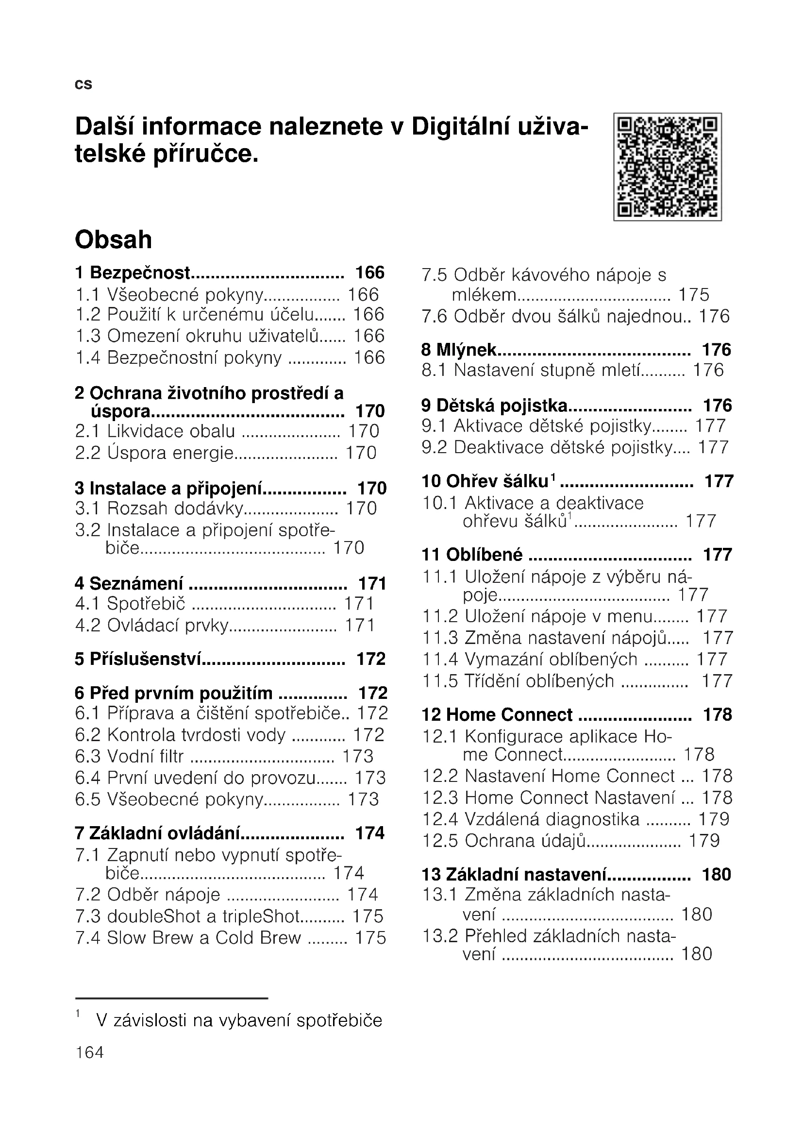 Další informace naleznete v Digitální uživa- telské příručce. Obsah 1 Bezpečnost...............................166
