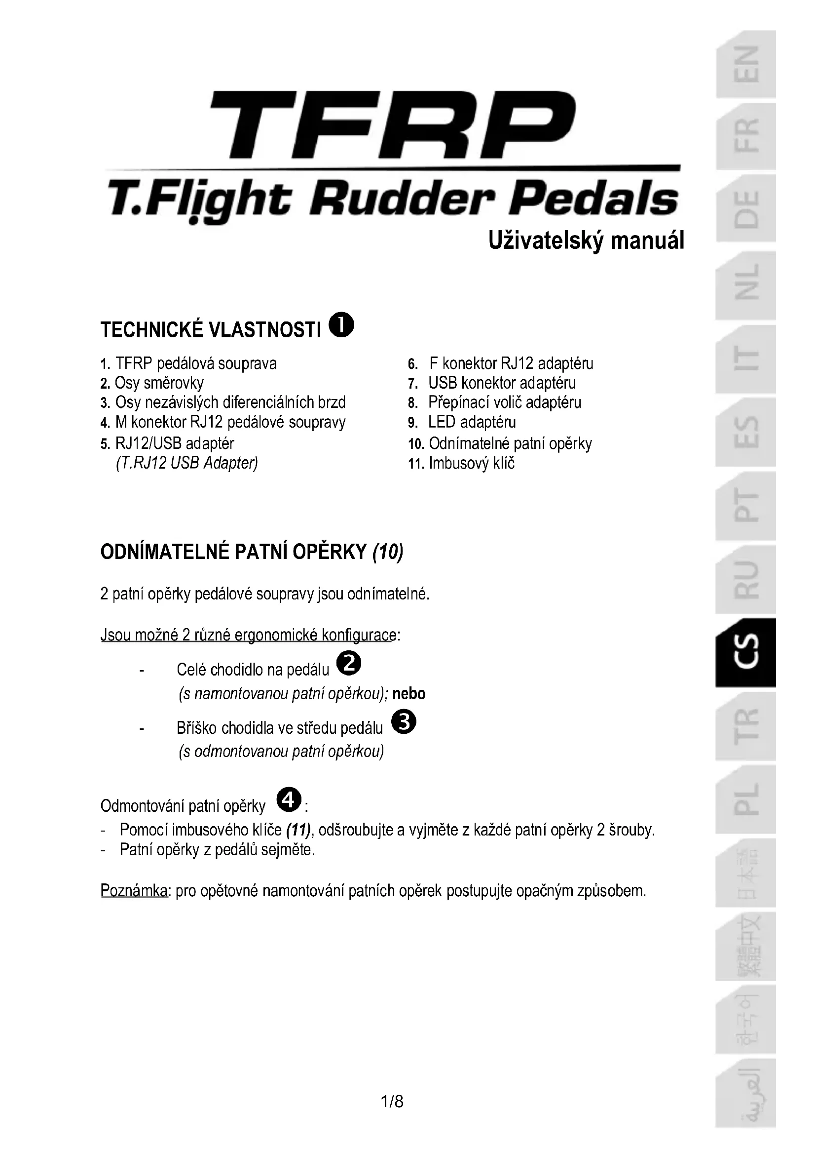 NÁVOD K OBSLUZE TFRP TFlight Rudder Pedals THRUSTMASTER
