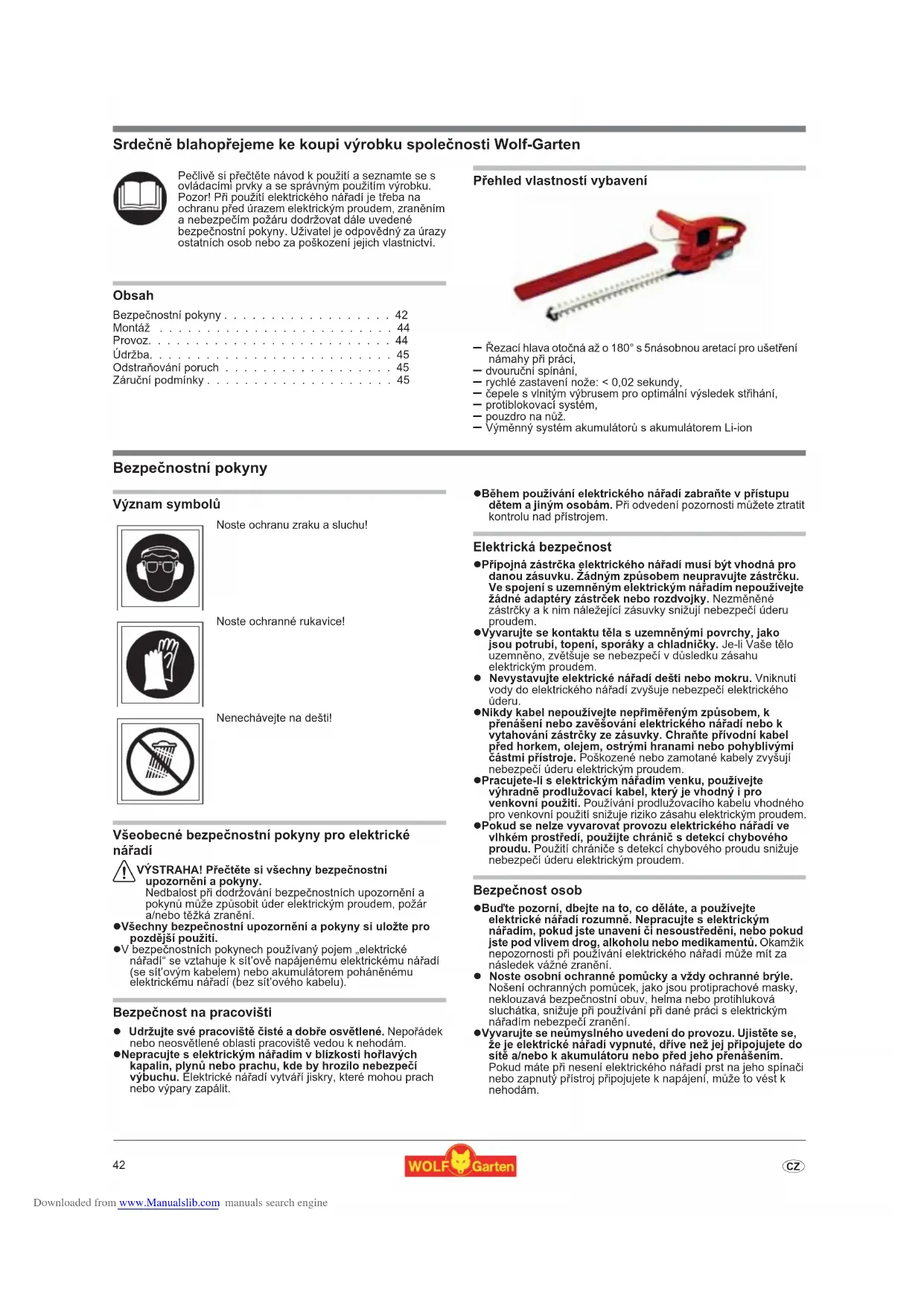 - Srde9n: blahop;ejeme ke koupi výrobku spole9nosti Wolf-Garten Obsah Bezpenostní pokyny p. 42