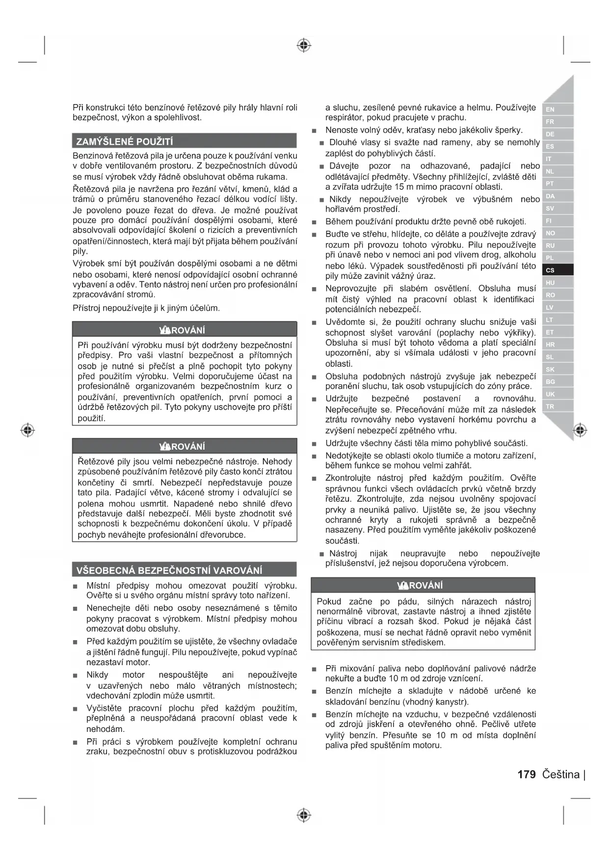 Pri použivani vyrobku musi byt dodrženy bezpečnostní prédpísy. Pro vaši vlastní bezpečnost a prítomnéch osob je nutné si prečíst a plné pochopit tytoPokyny prěd použitim vyrobku. Velmi doporučujeme Účast na profesónárně organizovaném bezpečnostním kurz o použivání,preventivních opatřeních,první pomoci a udžržě štežovych pil. TytoPokyny uschovejte pro priští použití.