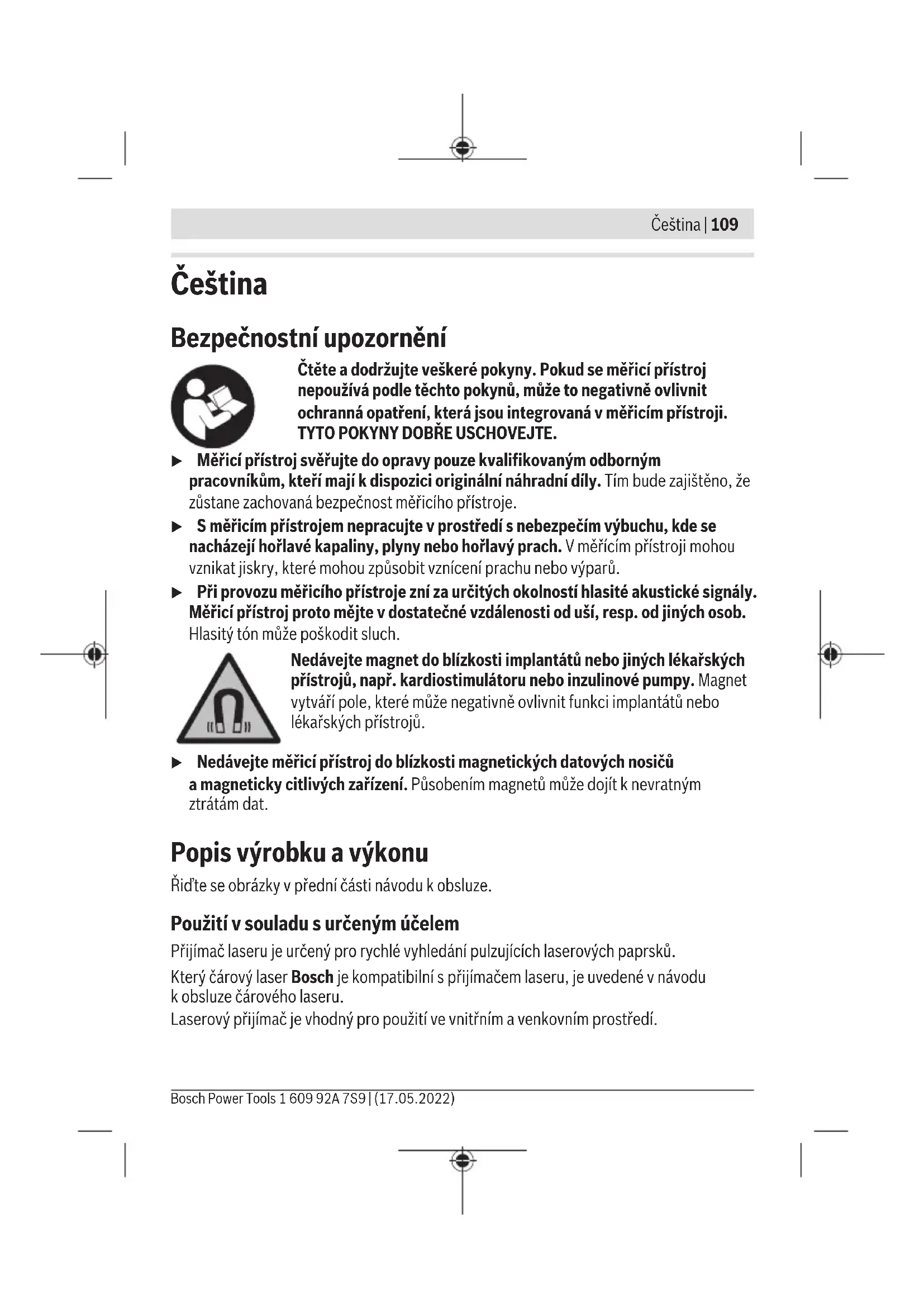 1 609 92A 7S9 | (17.05.2022) Bosch Power ToolsČeština | 111 Laserový přijímač LR 6 Přijímací úhel 90° Přesnost příjmu