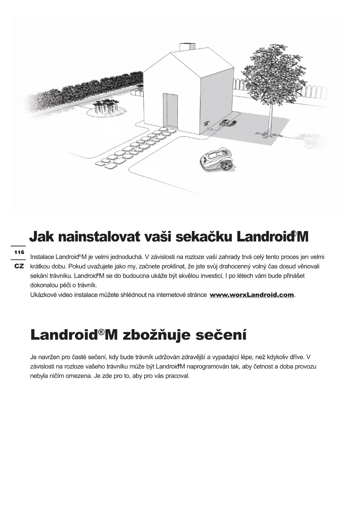 M se do budoucna ukáže být skvělou investicí, I po létech vám bude přinášet dokonalou péči o trávník. Ukázkové video instalace můžete shlédnout na internetové stránce www.worxLandroid.com. Landroid