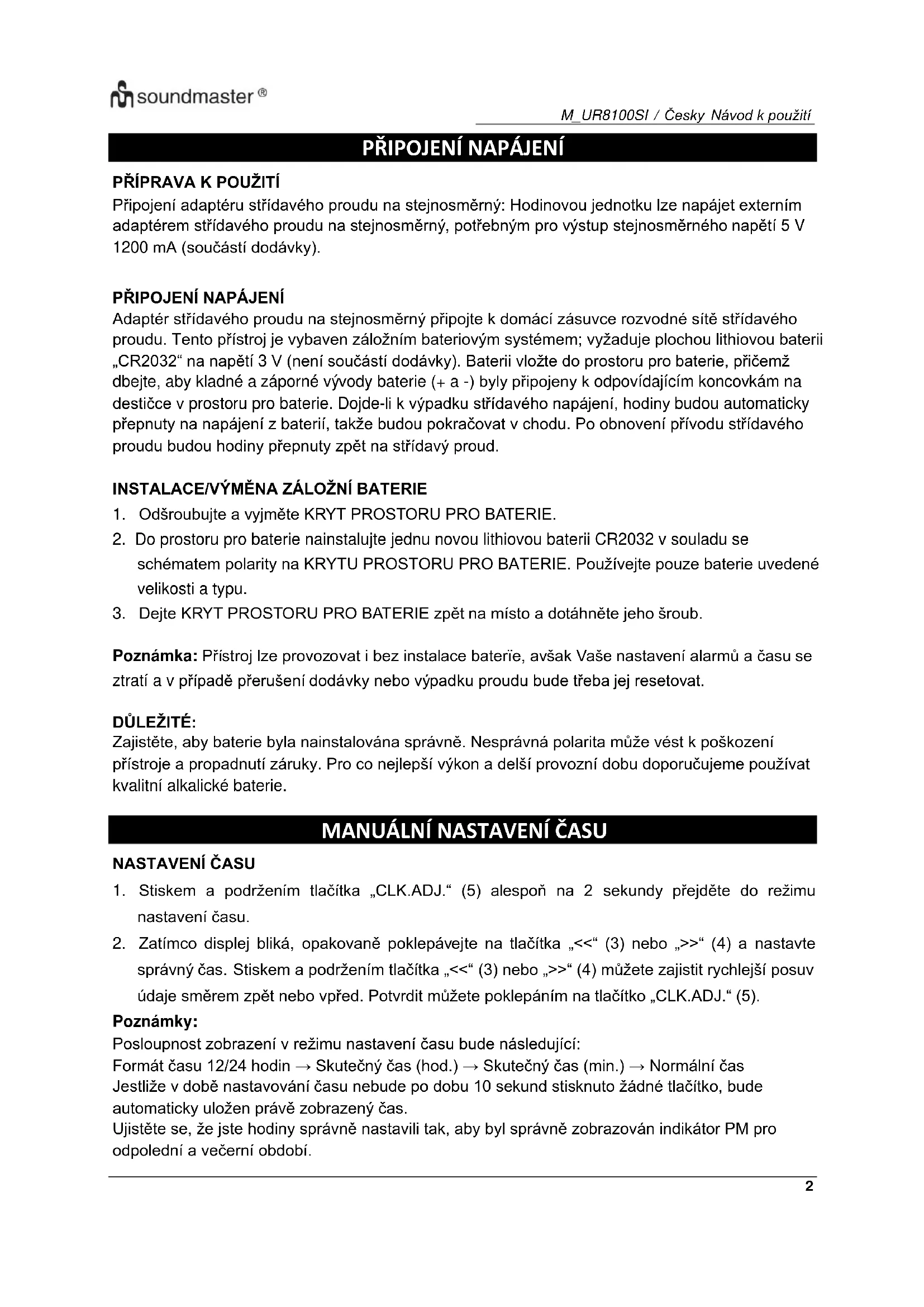 NÁVOD K OBSLUZE UR8100SI Soundmaster