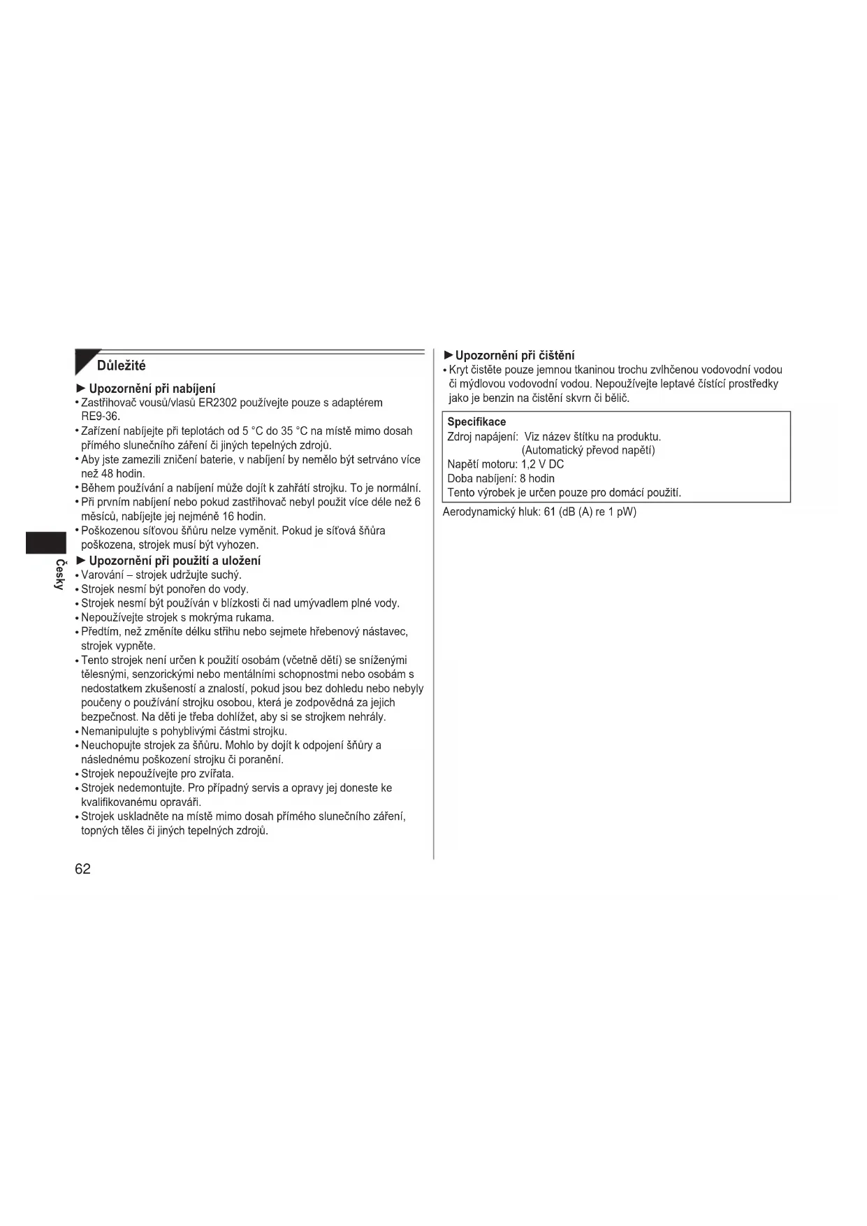 NÁVOD K OBSLUZE ER2302 PANASONIC