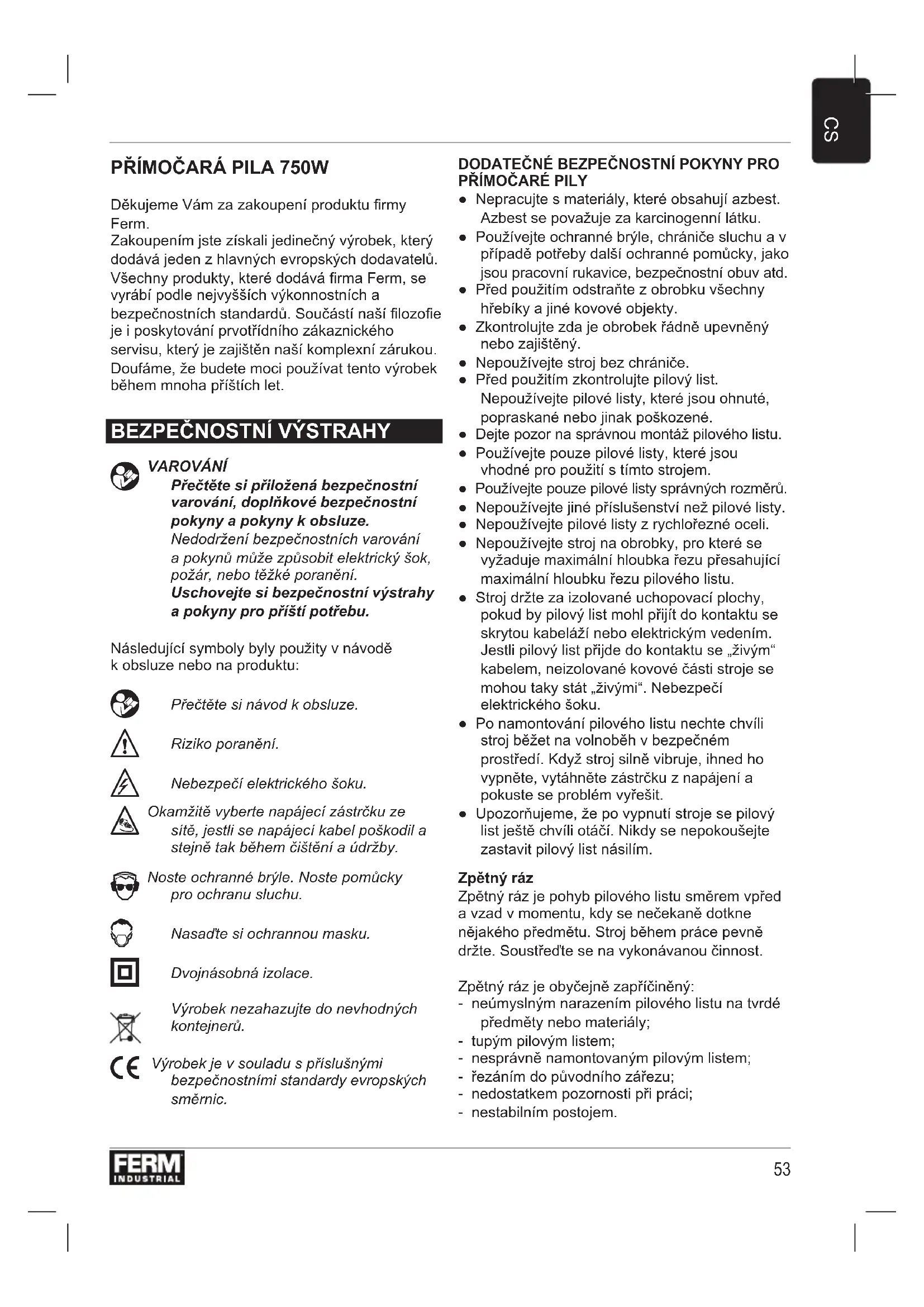 Děkujeme Vám za zakoupení produktu rmy Ferm. Zakoupením jste získali jedinečný výrobek, který dodává jeden z hlavných evropských dodavatelů. Všechny produkty, které dodává rma Ferm, se vyrábí podle nejvyšších výkonnostních a bezpečnostních standardů. Součástí naší lozoe je i poskytování prvotřídního zákaznického servisu, který je zajištěn naší komplexní zárukou. Doufáme, že budete moci používat tento výrobek během mnoha příštích let.