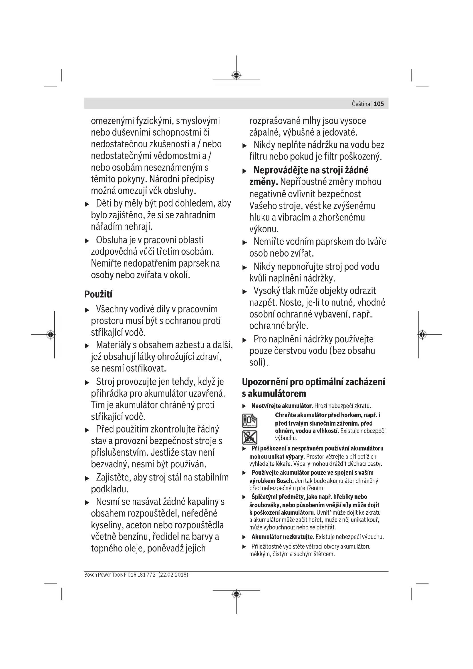 Stroj provozujte jen tehdy, kdyz je prihradka pro akumulator uzavrená. Tim je akumulator chráneny protistrikají vode.