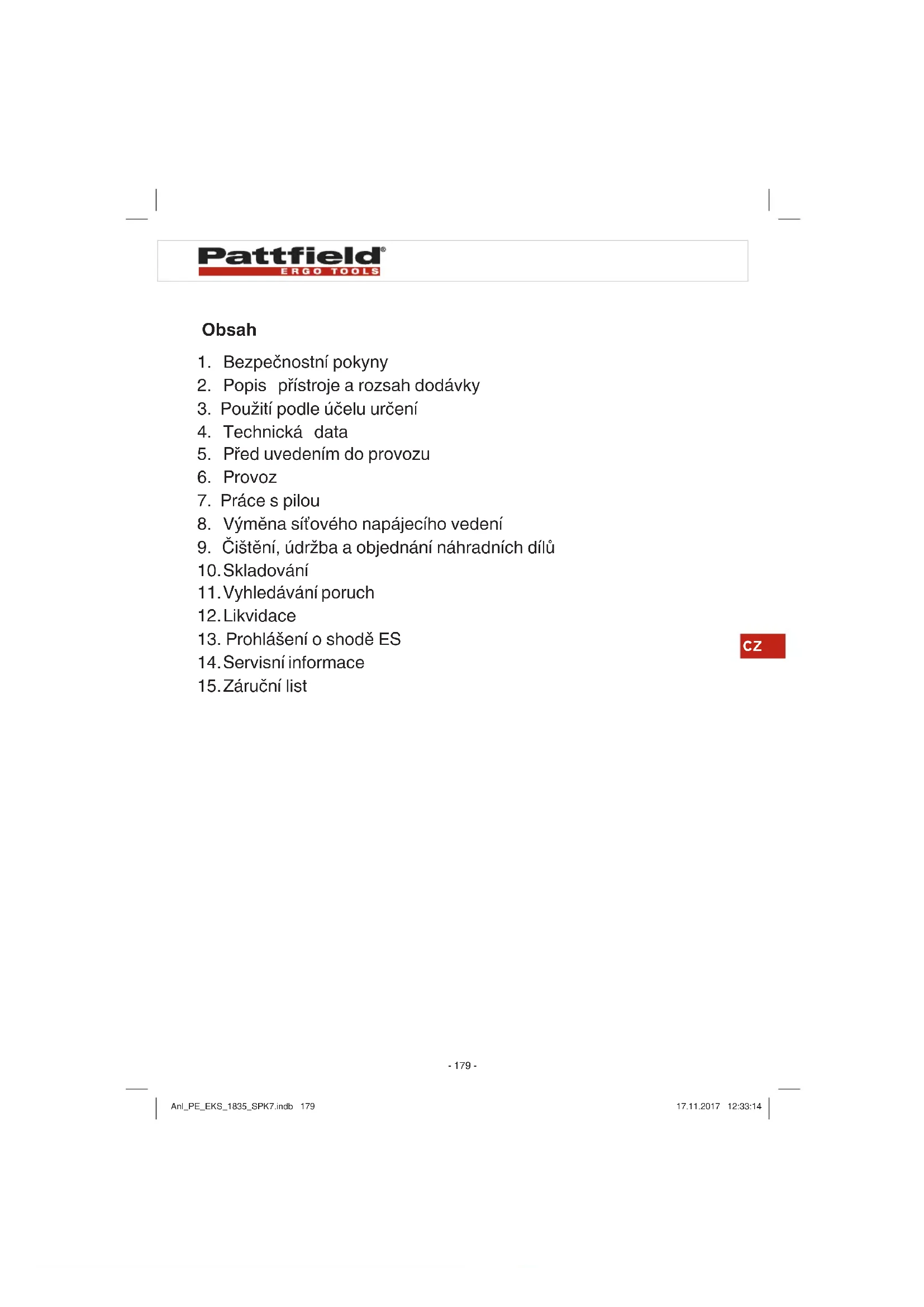 PEEKS 1835 - Pila Pattfield - Bezplatný návod k obsluze