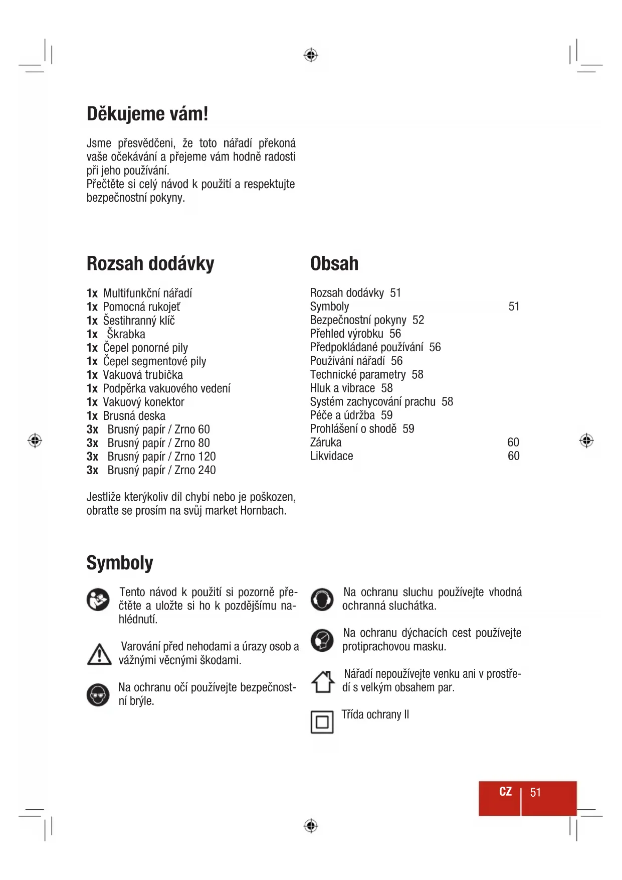 SPECIFICKÁ BEZPEČNOSTNI VAROVÁNIPRO MULTIFUNKČNÍ NASTROJE