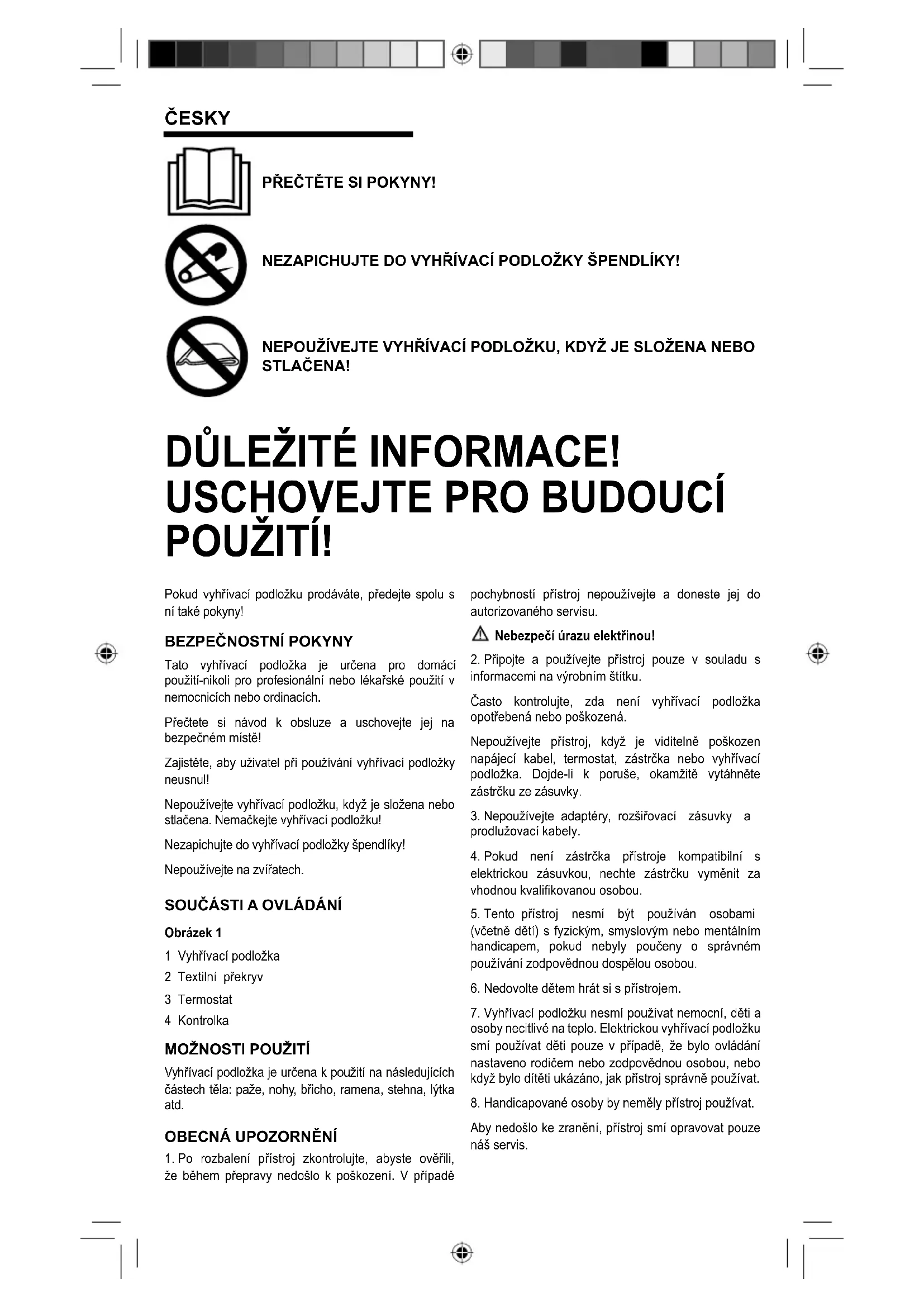 POUŽITÍ! Pokud vyhřívací podložku prodáváte, předejte spolu s ní také pokyny!