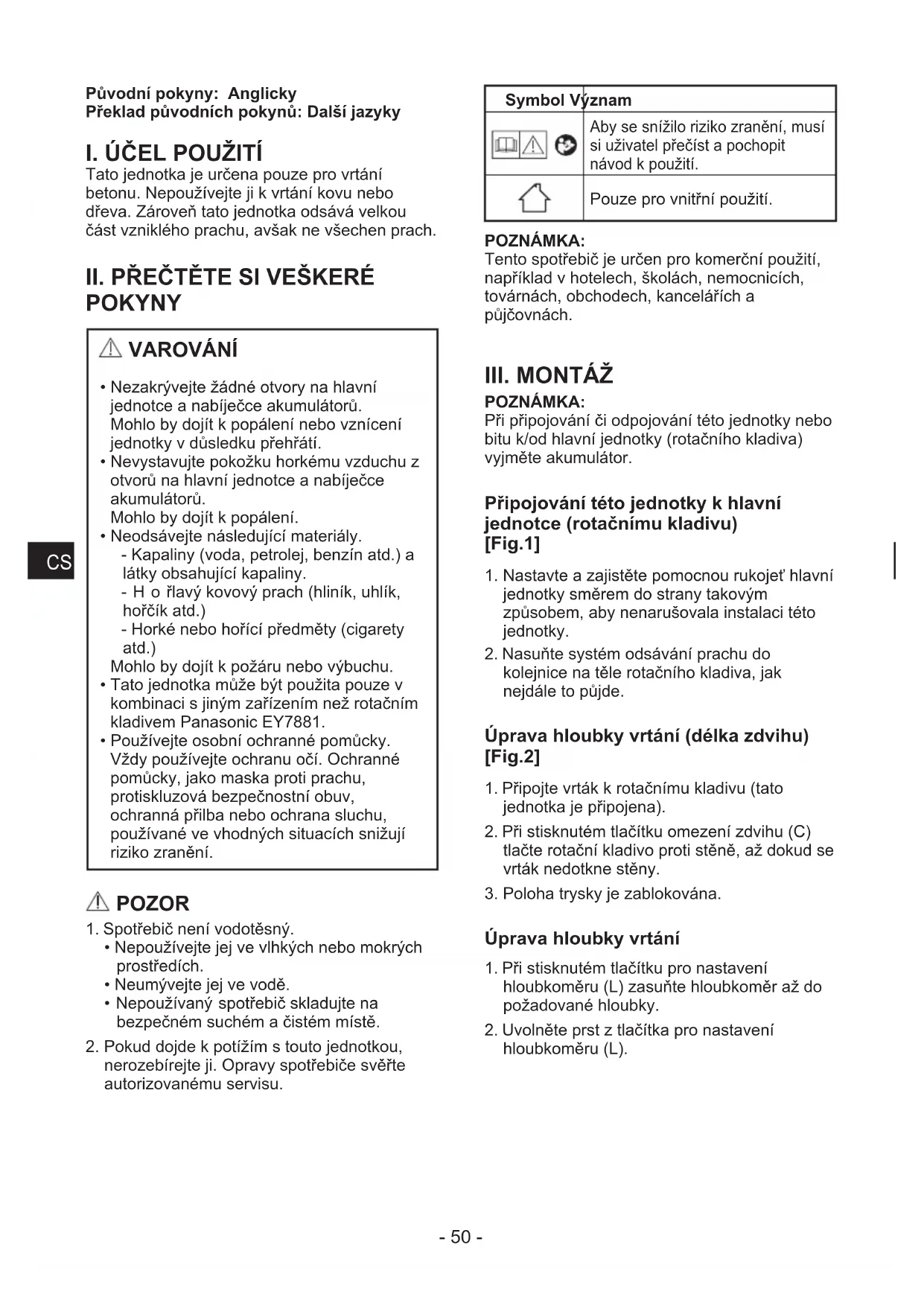 - Tato jednotka může být použita pouze v kombinaci s jiným zařízením než rotačním kladivem Panasonic EY7881.