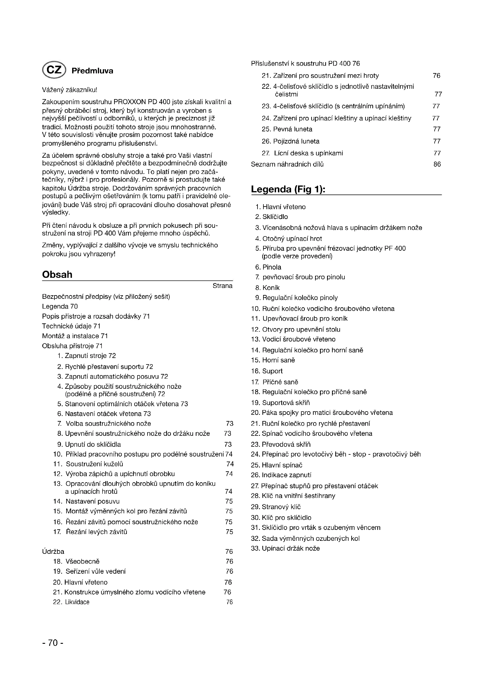 Za ucelem spravne oblsuhy stroje a také pro Vasi vlastni bezpečnosti si dukladně prěctěte a bezpodminěcně dodržujtePokyny, uvedené v totom námodu. To platí nejen pro začatečníký, nýbrž i pro profesionály. Pozorně si prostudujte také kapitolu Üdržba stroje. Dodržovámim spravněch pracovnich postupú a pečlivý městřováním (k totu patří i pravidné olejováni) bude Vás stroj pri opracovány dlouho dosahovat prěsné vysledky.