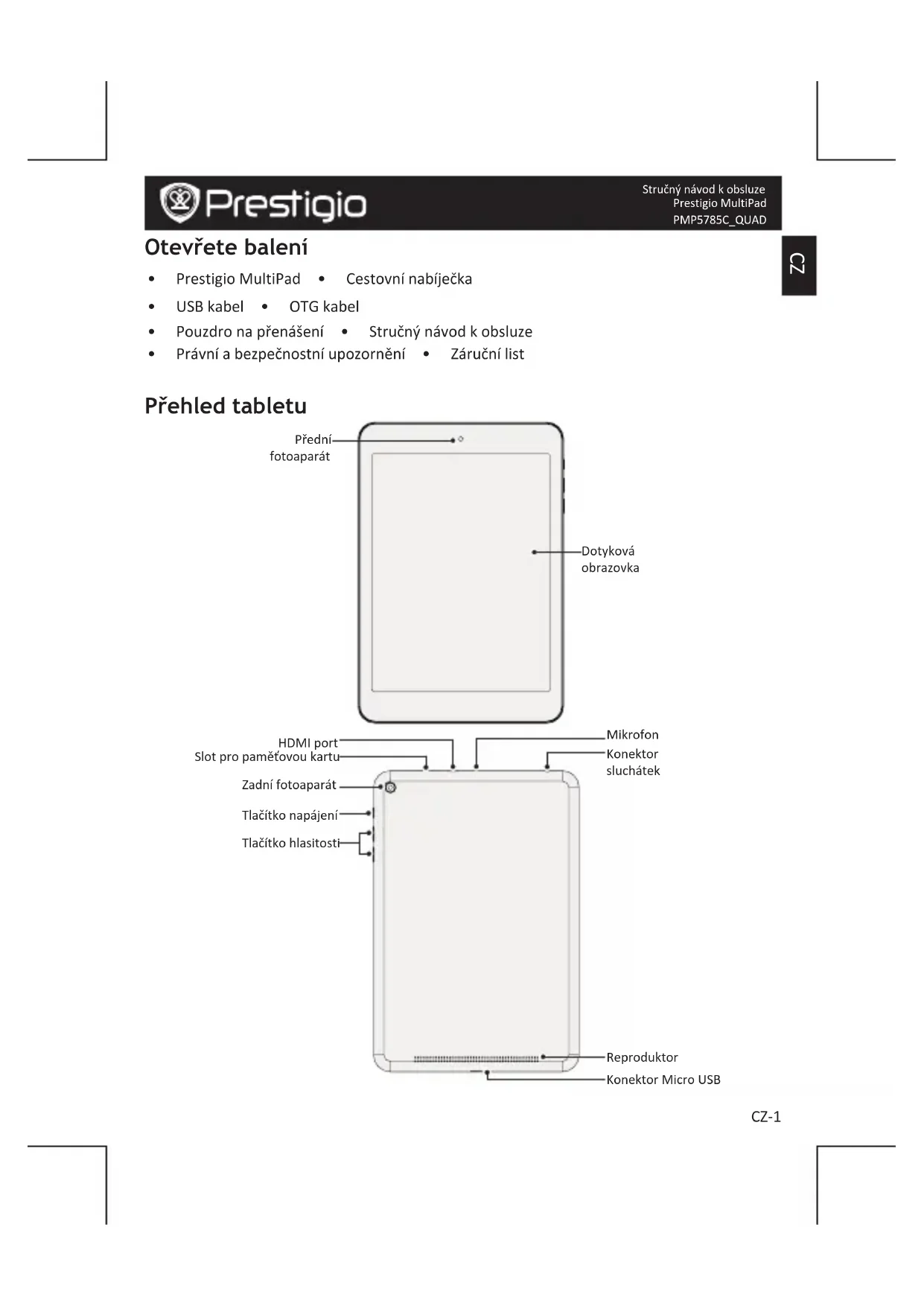 NÁVOD K OBSLUZE Multipad 4 Quantum 7.85 PRESTIGIO