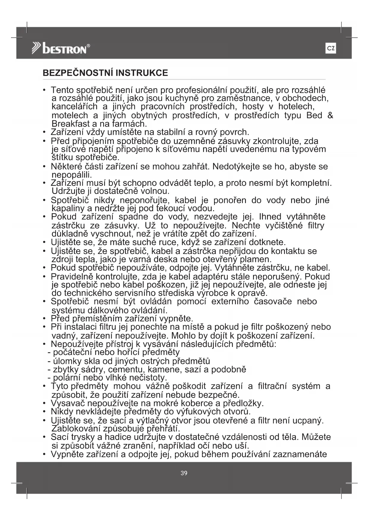 - Tyto predměty mohou vázné poskodit zařizení a filtracné systém a způsobit. ze použítí zařizení nebude bezpečné.