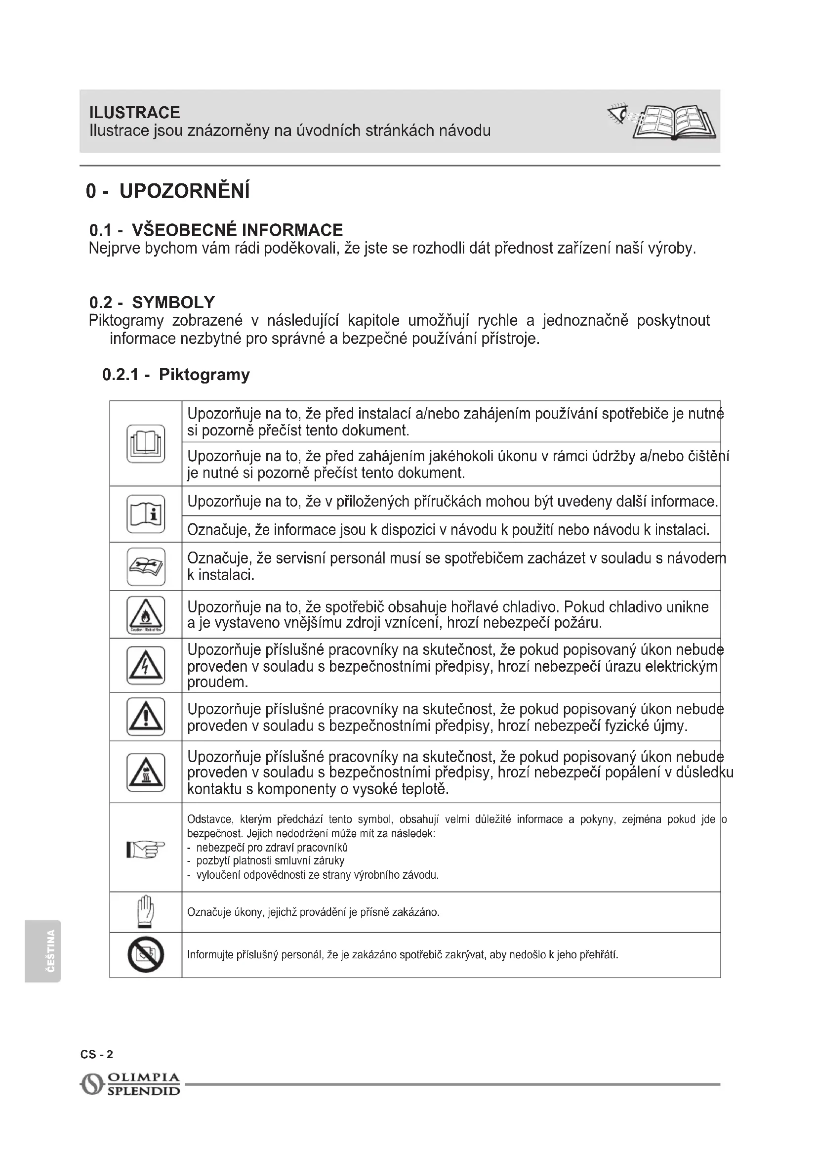 souhlasu společnosti OLIMPIA SPLENDID je zakázáno jeho kopírování nebo poskytování třetím osobám. Spotřebiče mohou být přepracovány, a proto mohou obsahovat díly odlišné od zobrazených komponentů, aniž by byly dotčeny texty obsažené v této příručce.
