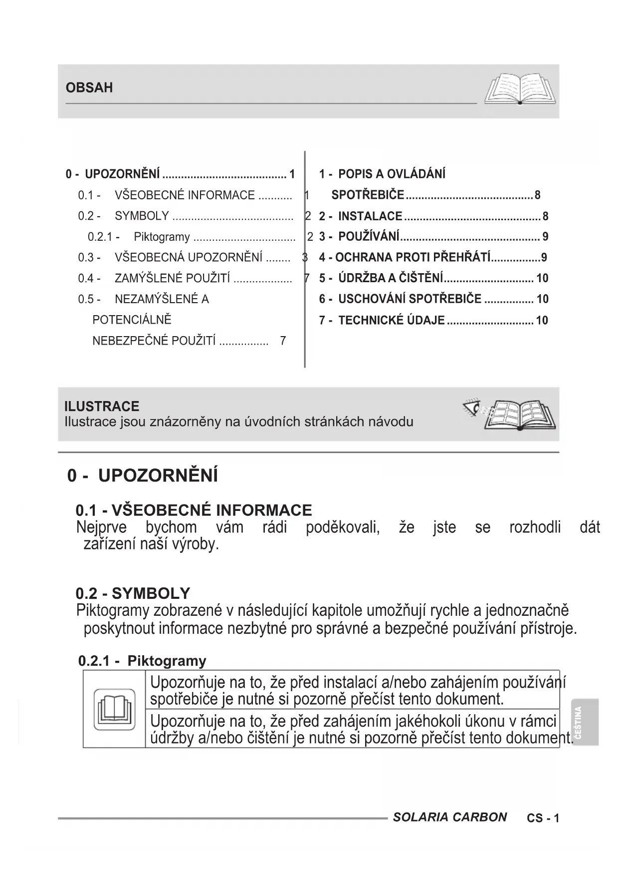 3. Pečlivě tuto příručku uchovejte pro případ dalšího nahlédnutí.SOLARIA CARBON