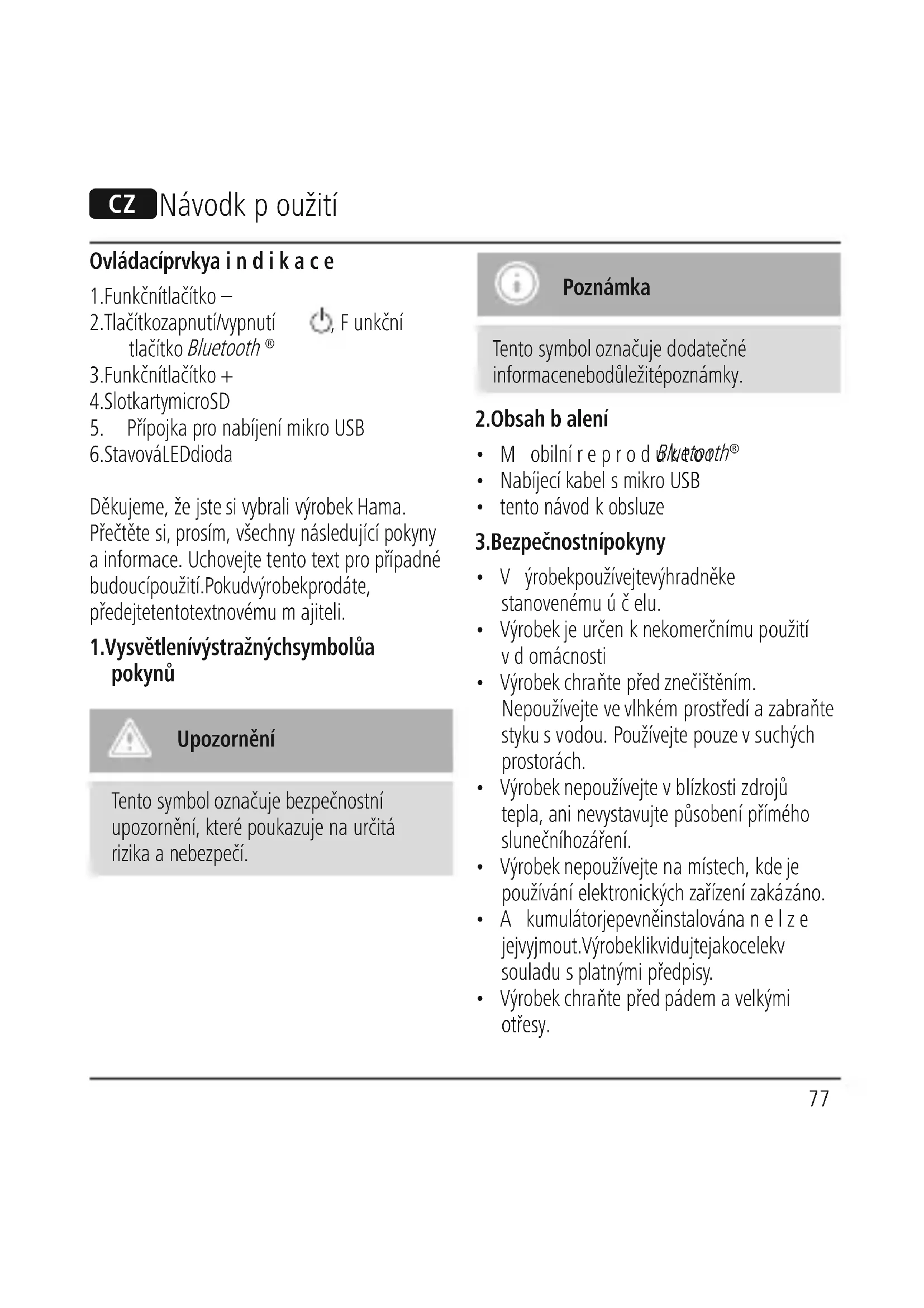 Děkujeme, že jste sivybrali výrobek Hama. Přečtěte si, prosím, všechny následujícípokyny ainformace.Uchovejtetento text propřípadné budoucí použití. Pokud výrobek prodáte, předejte tento text novémumajiteli.