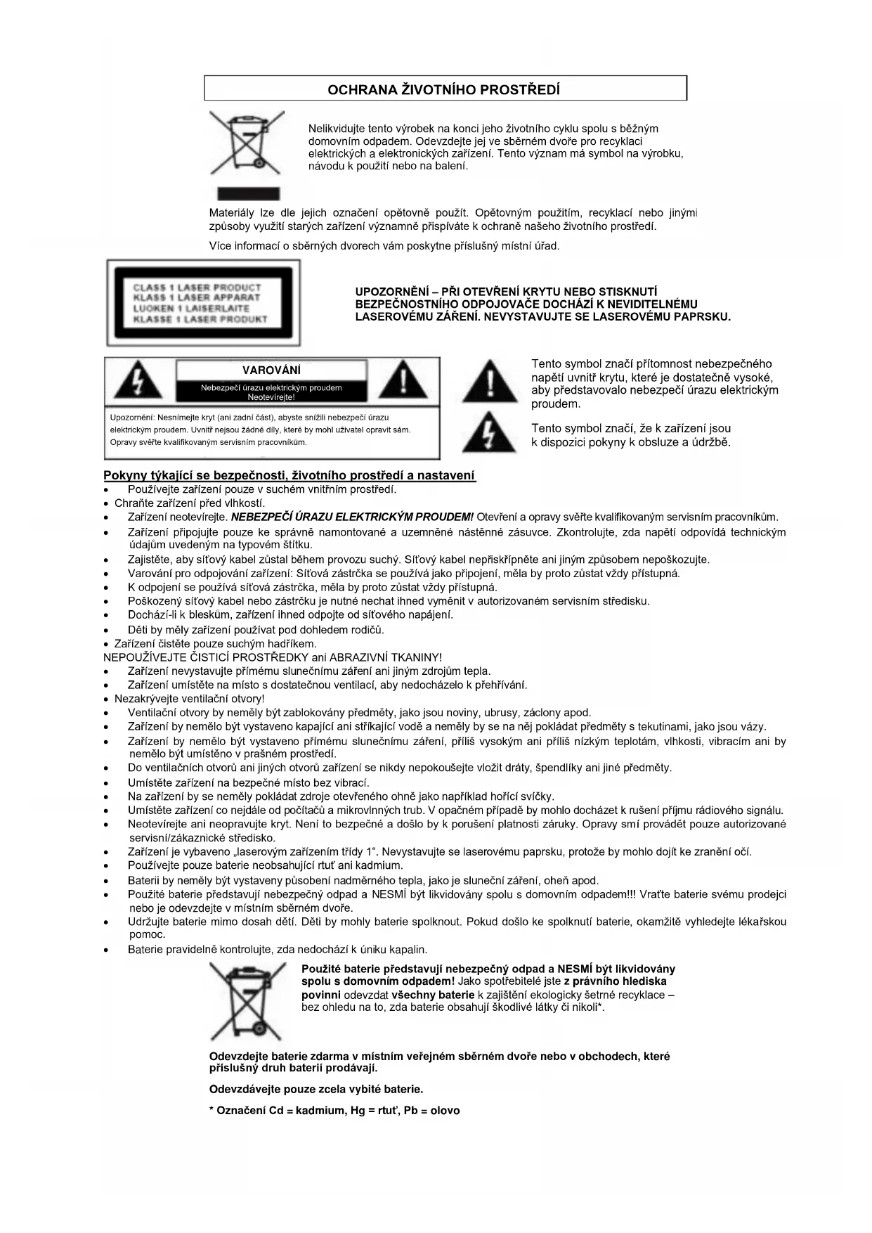 Použite baterie prěstavuji nebezpečné opdad a NESMI byt likvidovány spolu s domovním opdadem! Jako spotřebitelé jste z prévního hlediska povinni odevzdat věchney baterie k zajistěné ekologicky šetné recyklace – bez ohledu na to, zda baterie obsahuju skodlivé latky Č nikoli*.